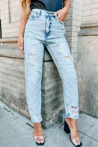 It All Begins High Rise Distressed Straight Leg Jeans (Medium) - NanaMacs
