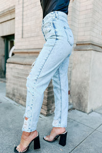 It All Begins High Rise Distressed Straight Leg Jeans (Medium)