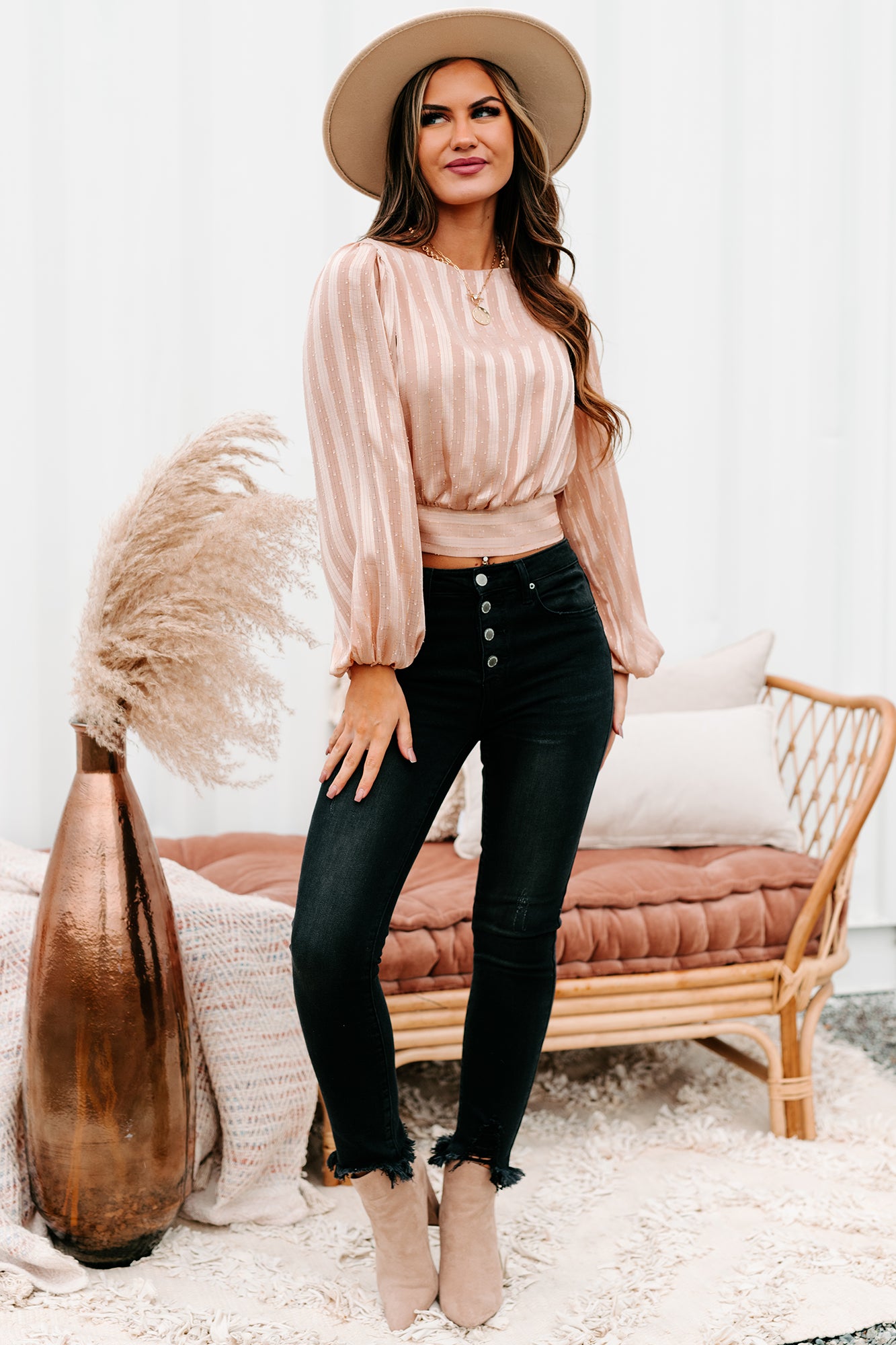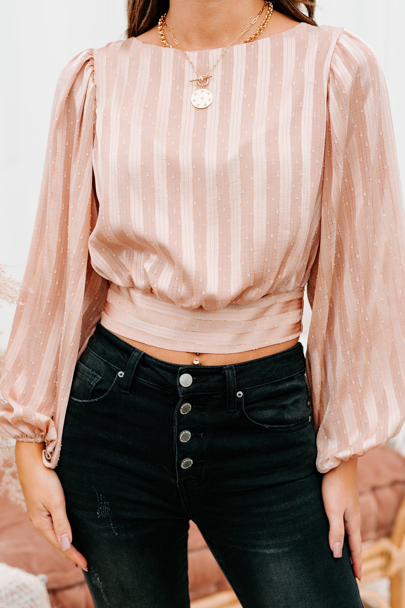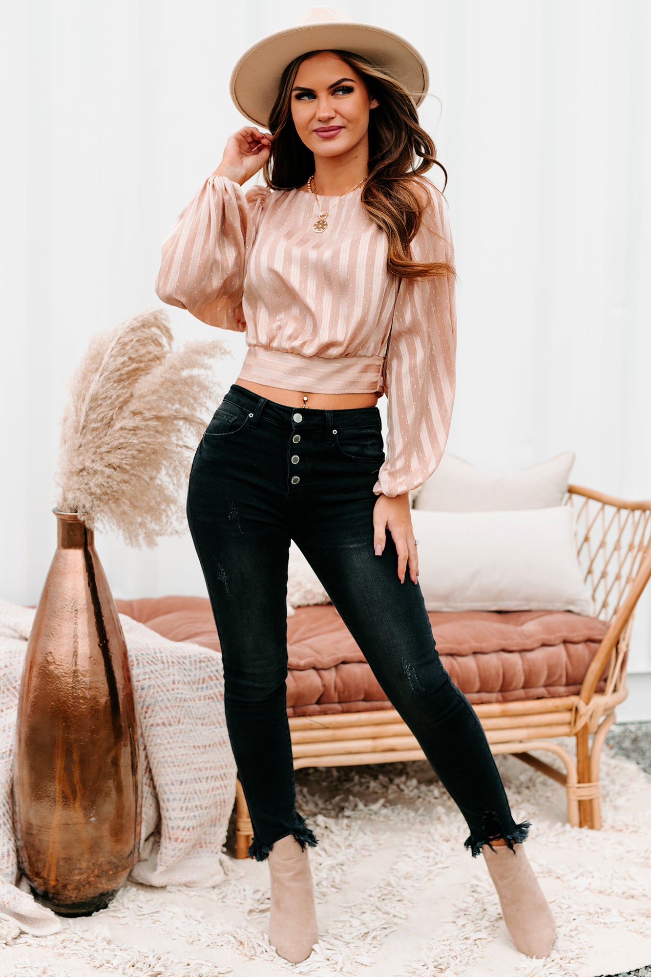This Champagne Tie-Back, Balloon Sleeve Top Will Dress Up Any Pair Of Jeans!