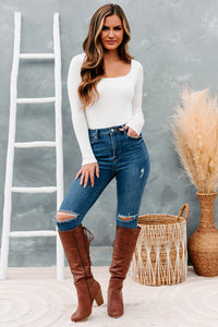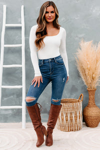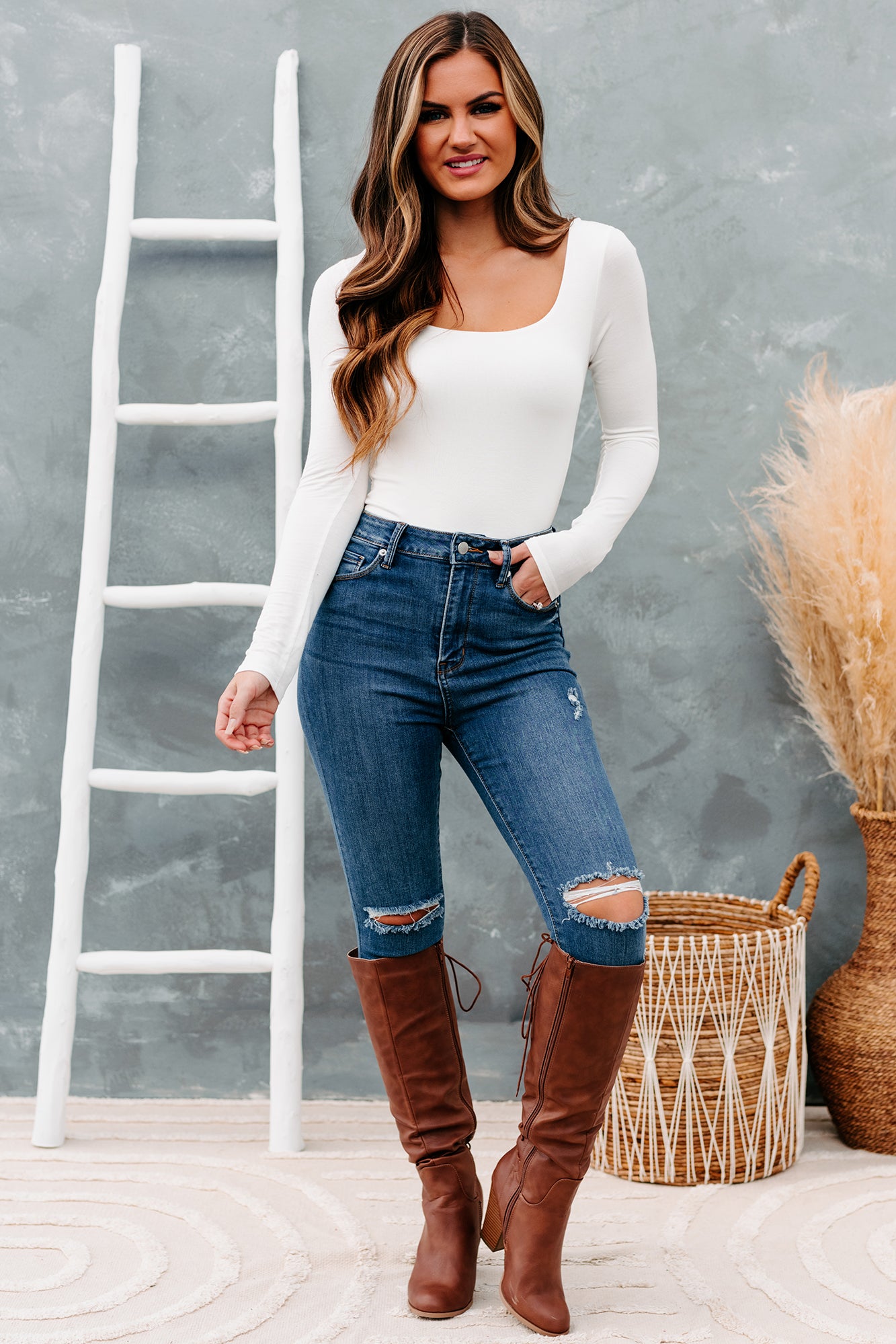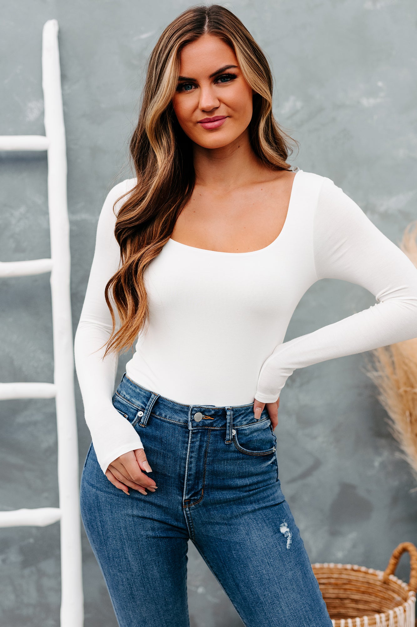 This Ivory, Square Neck Bodysuit Will Be The Foundation Piece Of So Many Amazing Outfits!