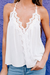 This Off White, Lace Trimmed, Racerback Tank Top Will Be A New Closet Staple!