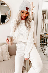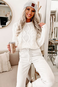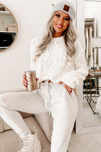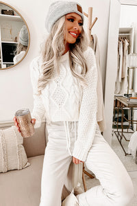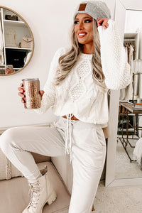 Just For You Cable Knit Drawstring Waist Sweater (Ivory)