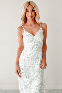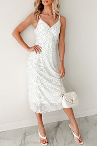 Just One Smile Polka Dot Midi Dress (Ivory/Olive)