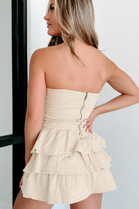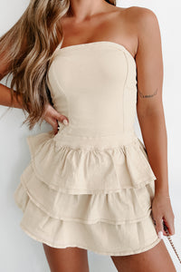 Just Peachy Strapless Ruffled Denim Mini Dress (Ecru) - NanaMacs