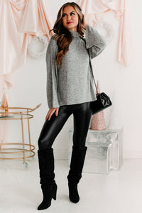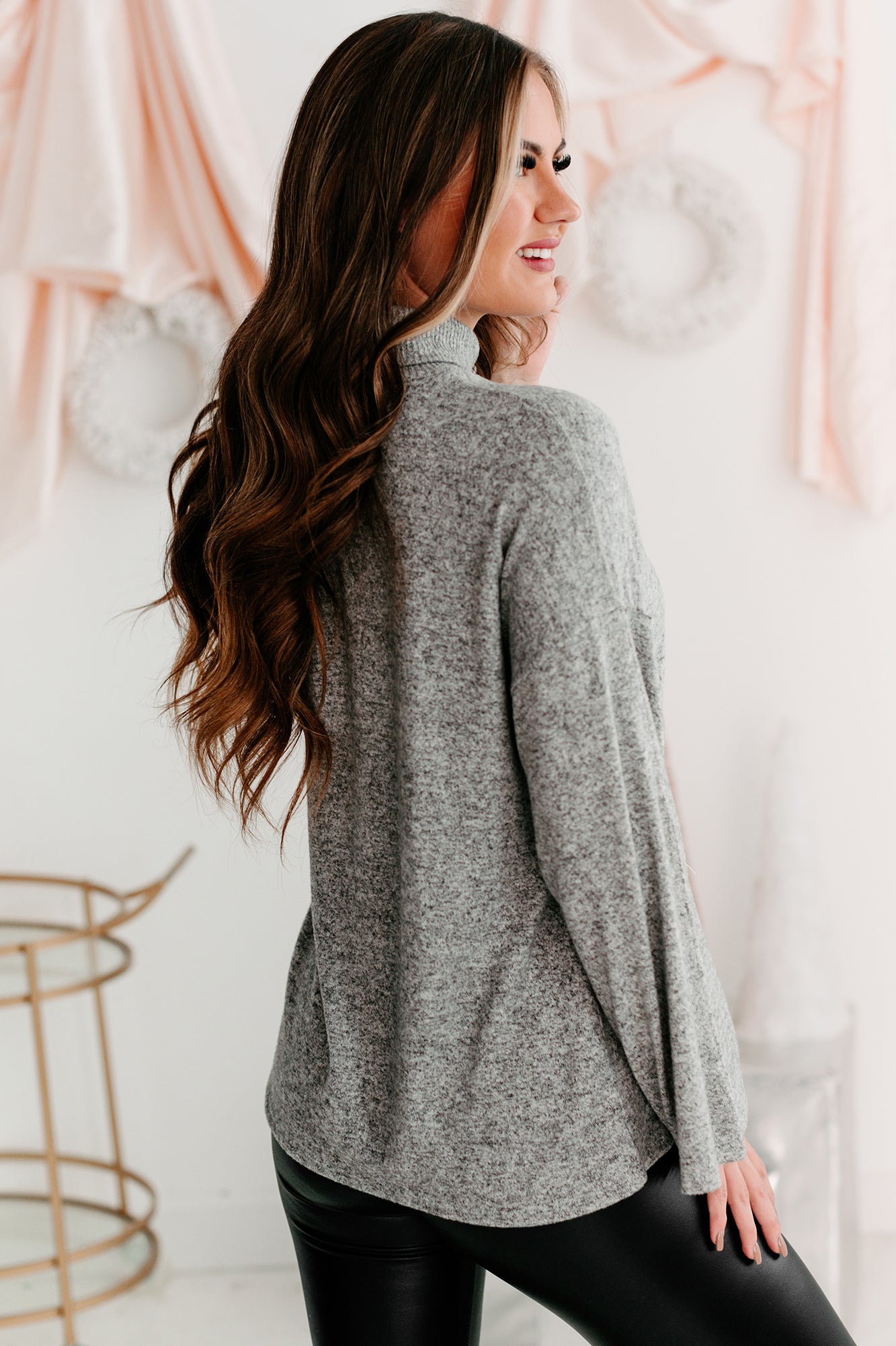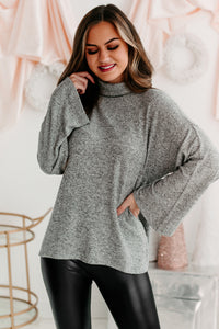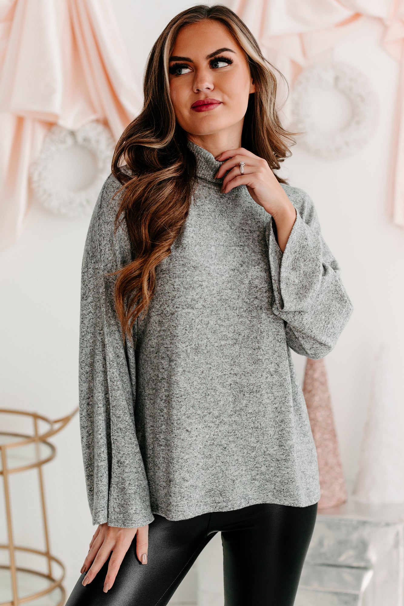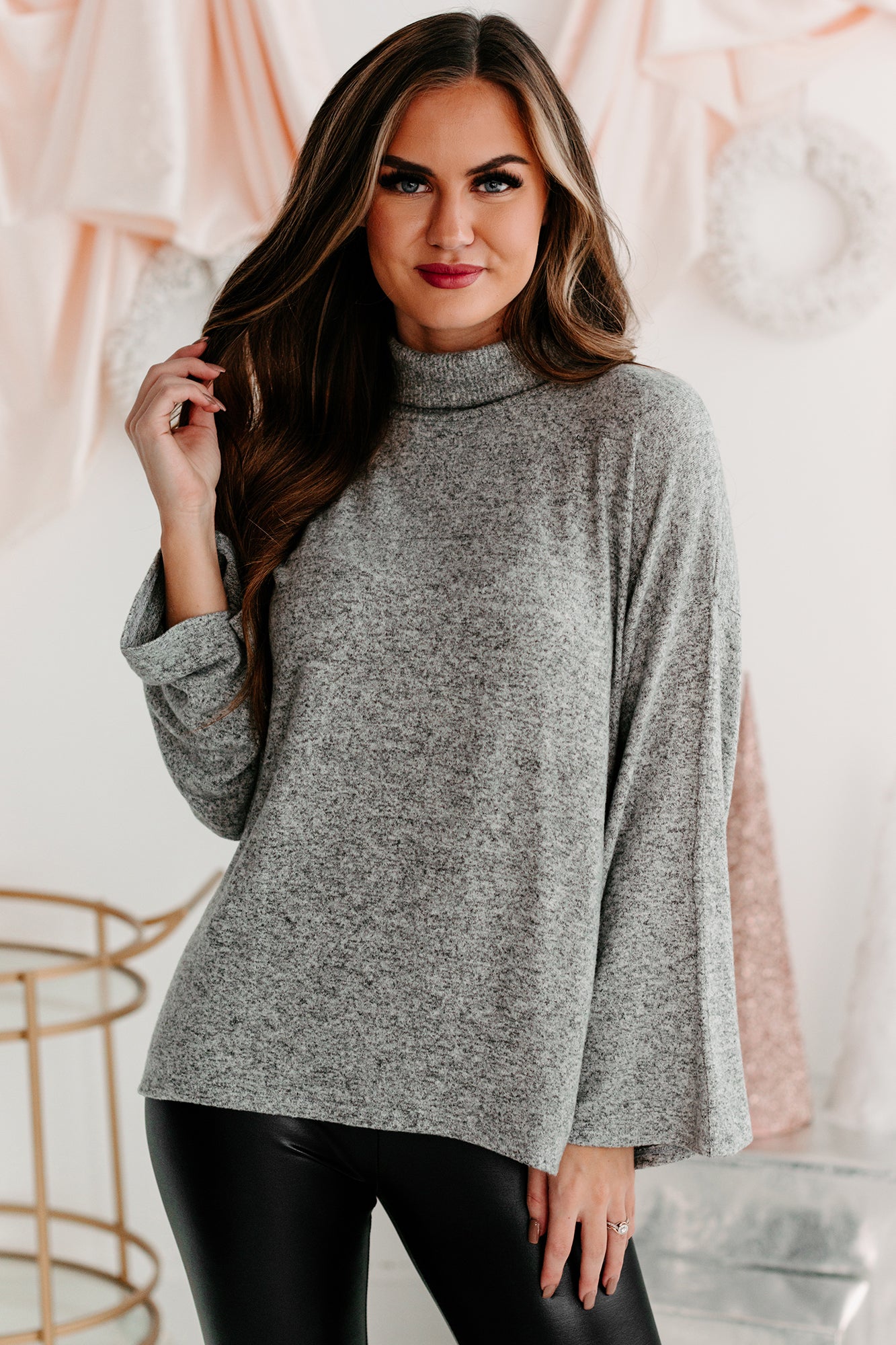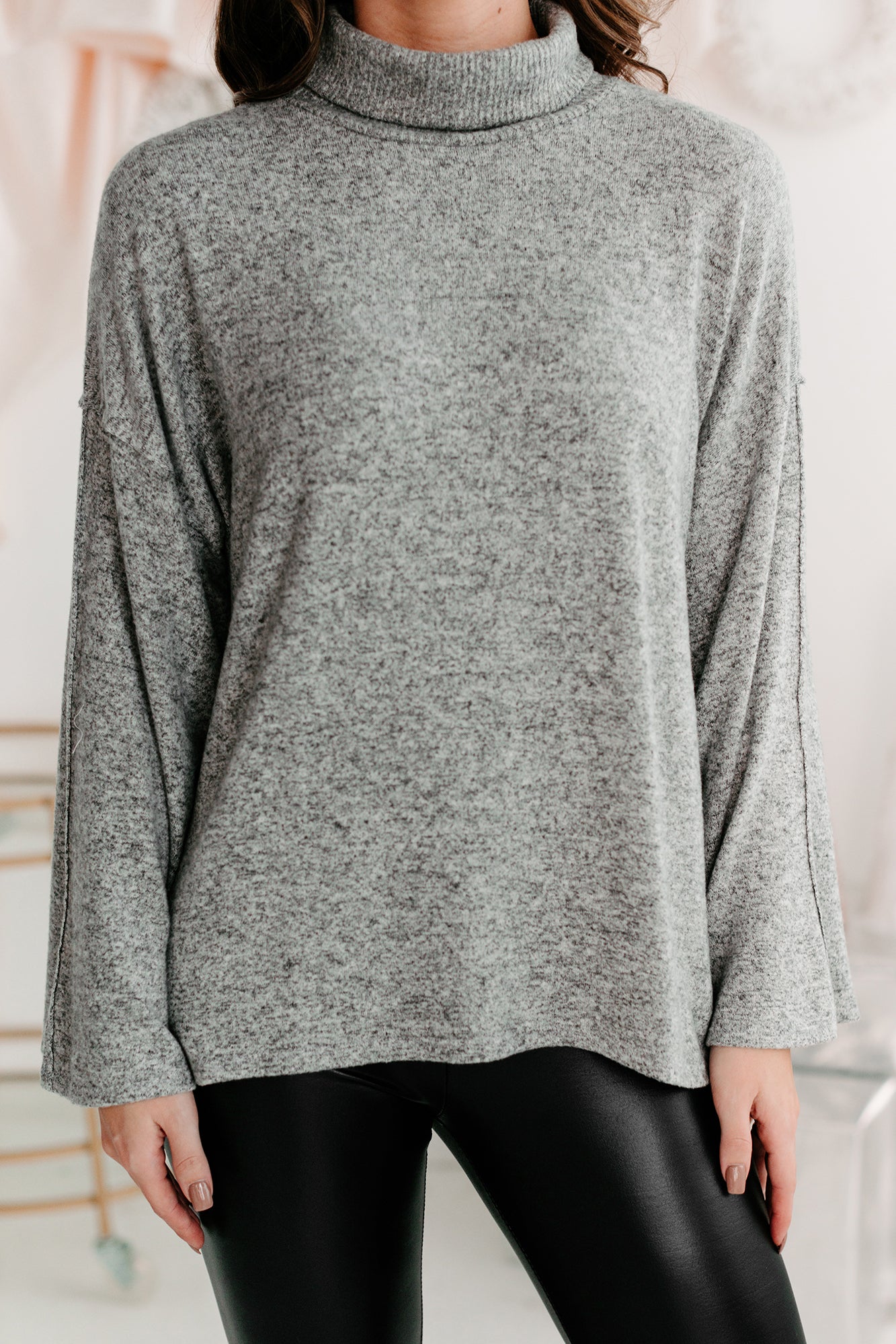 It's Easy To See How You Can Love This Heather Gray, Wide Sleeve, Turtleneck Top! It's So Soft & Comfortable!