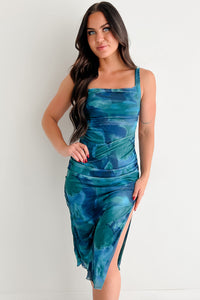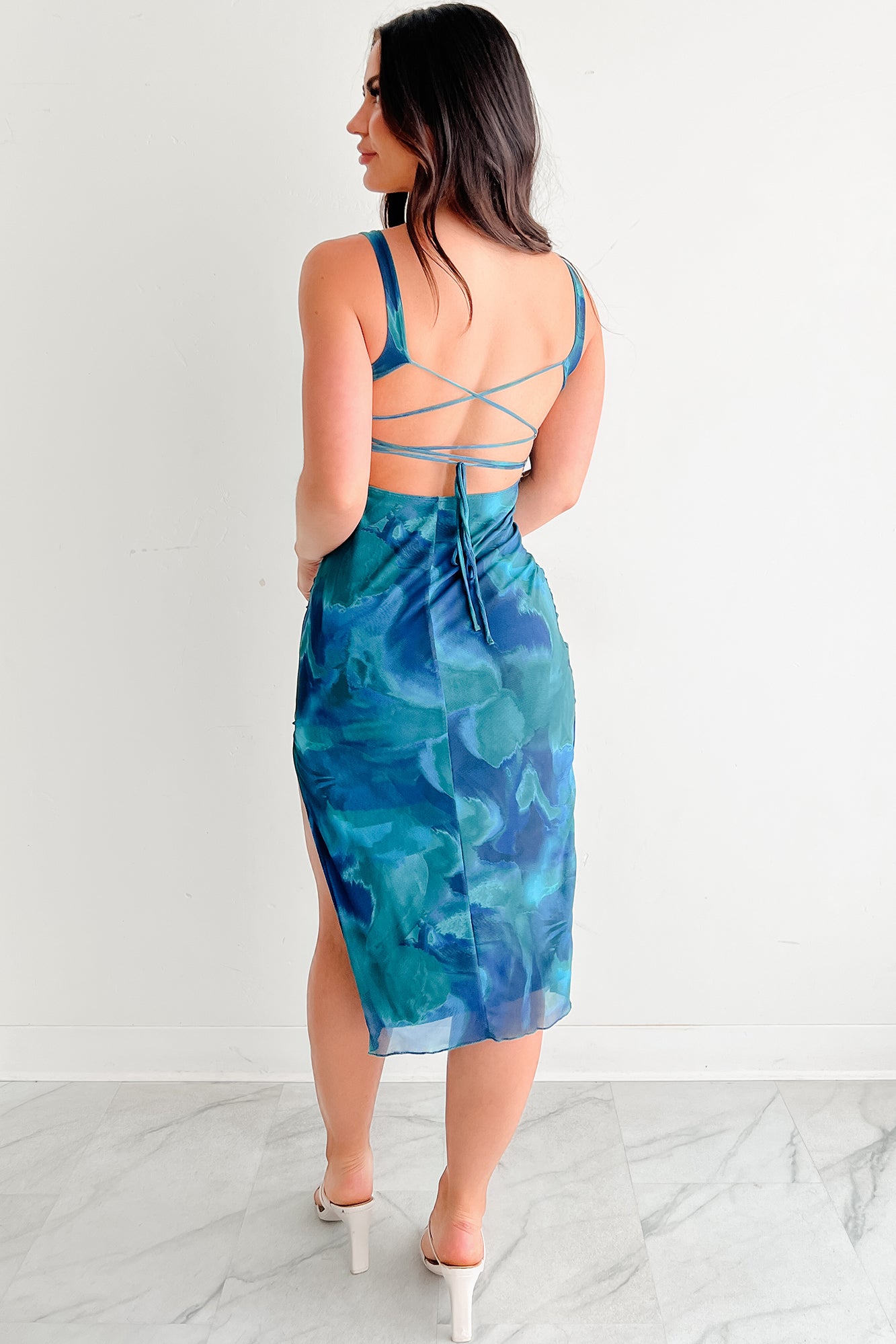 Just Us Two Sleeveless Mesh Midi Dress (Blue/Green)