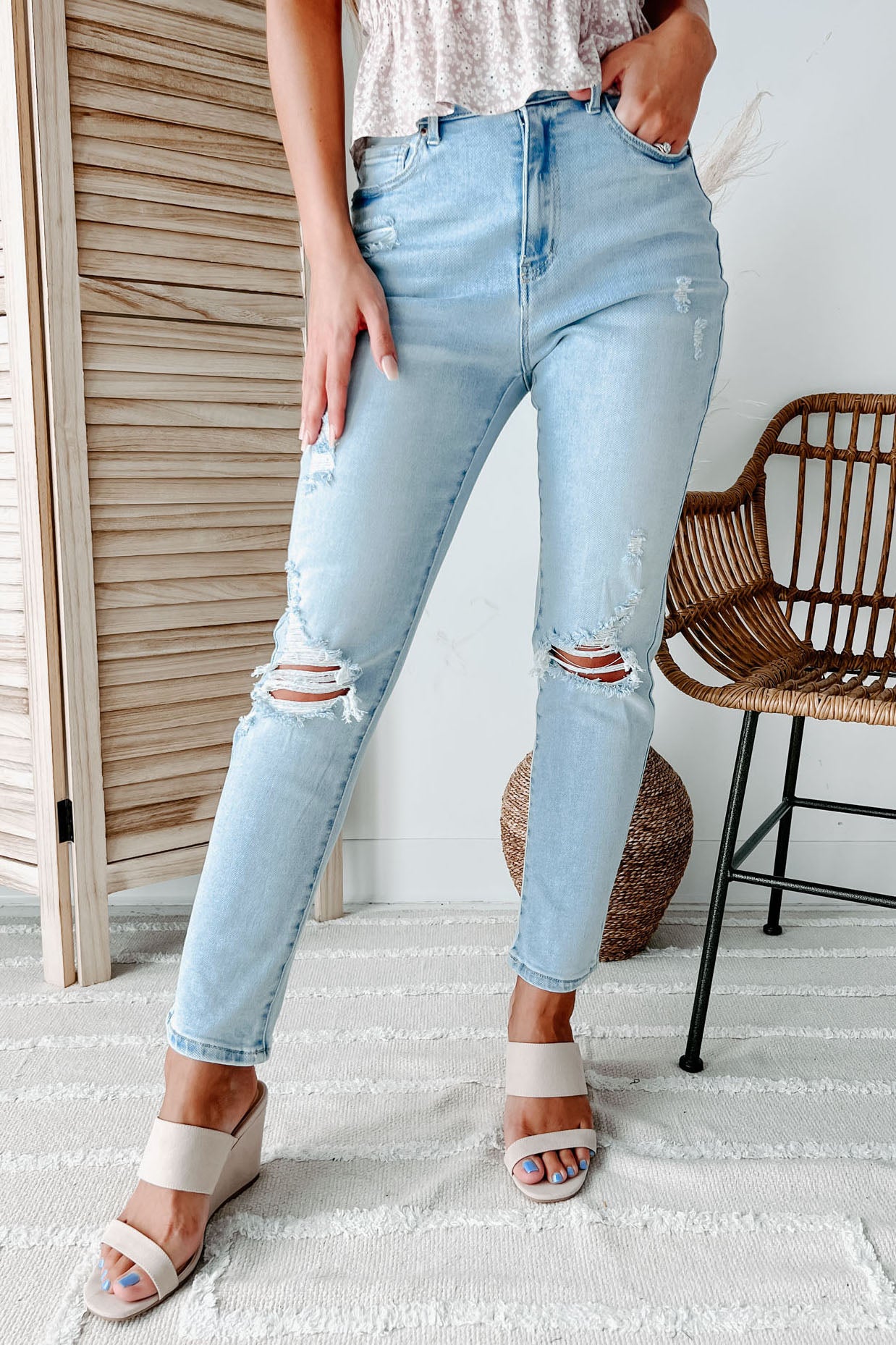 Everyone Needs A Good Pair Of Mom Jeans And These Light Wash, Distressed Jeans, Are The Perfect Pair!