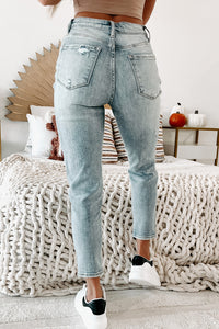 These Medium Washed Jeans Are Distressed, Slightly Cropped, And Will Look Cute With Sandals And Tank Tops!