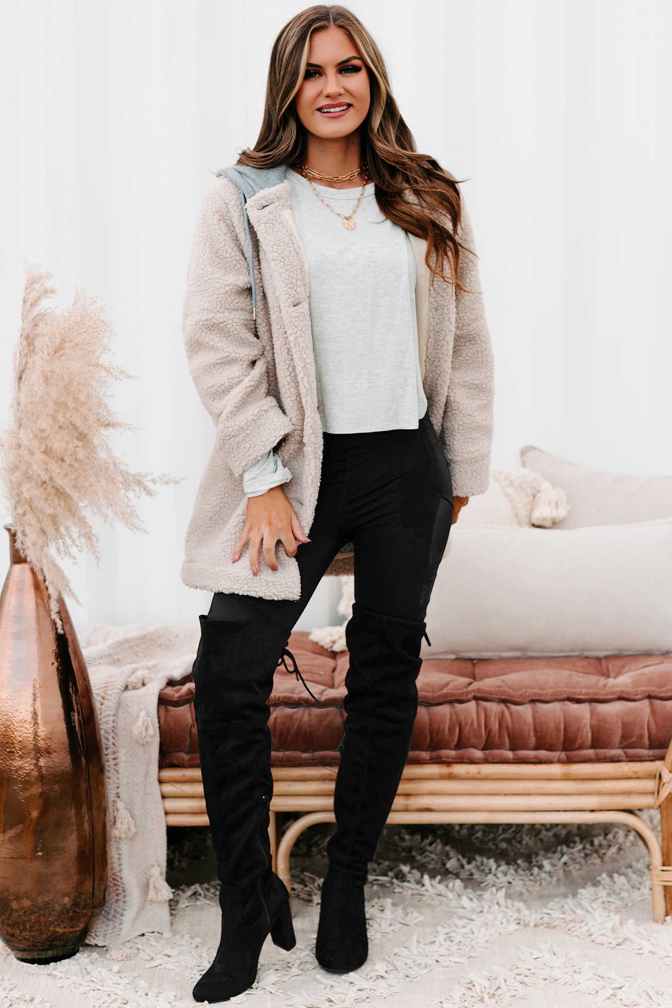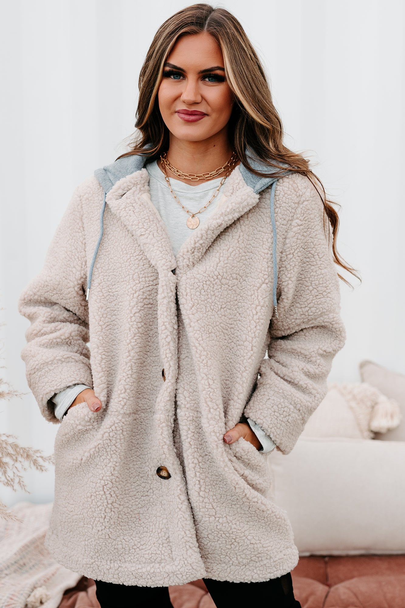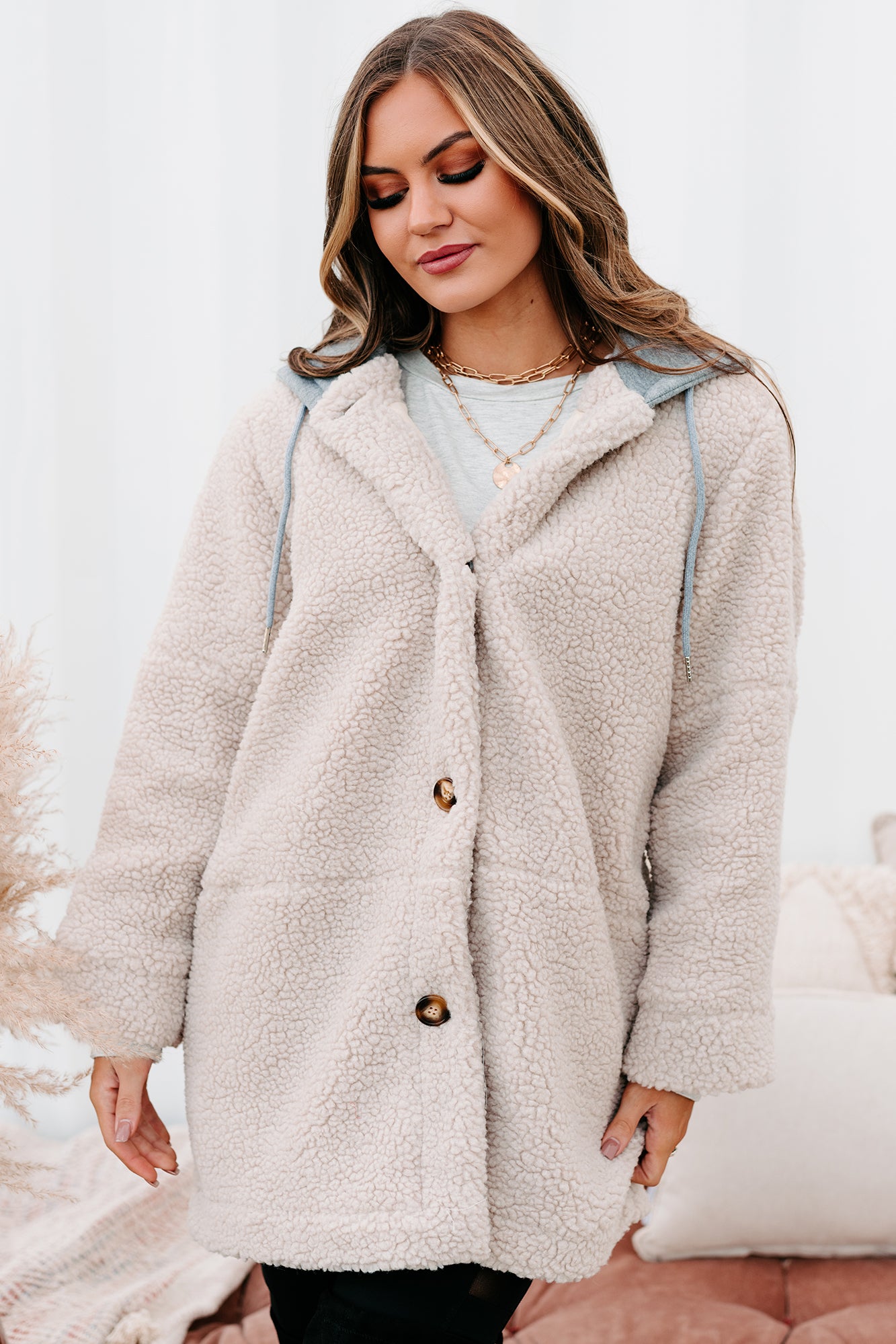 Keeping Me Toasty Hooded Teddy Coat (Light Beige/Grey)