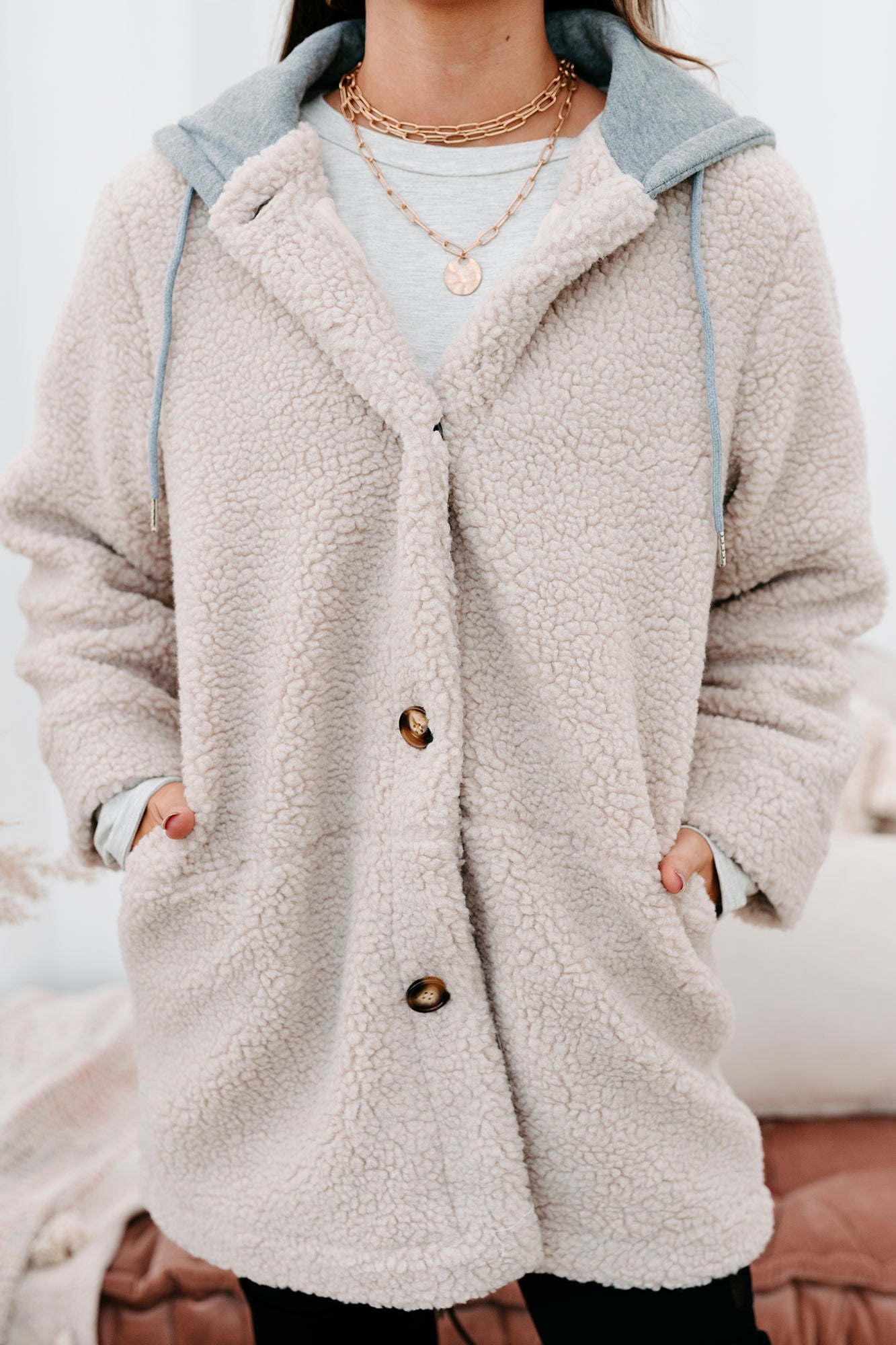 Keeping Me Toasty Hooded Teddy Coat (Light Beige/Grey) - NanaMacs