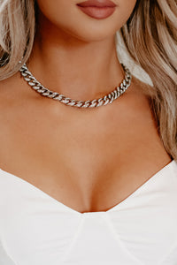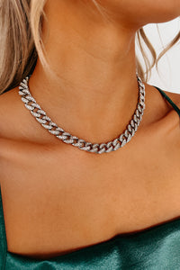 Keeping My Cool Rhinestone Chain Necklace (Silver)