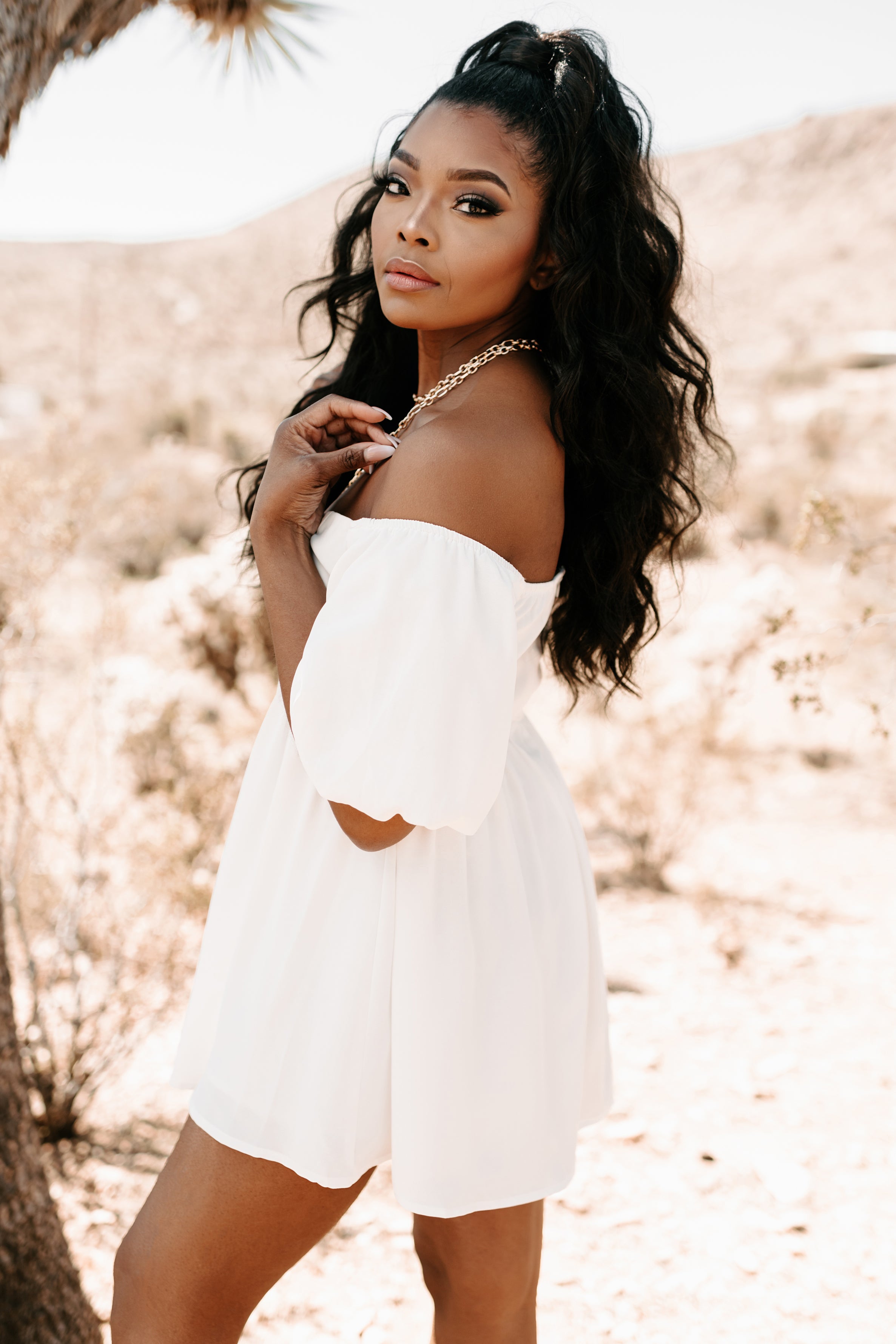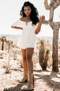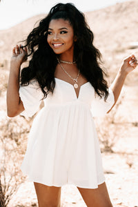 Keyla Off The Shoulder V-Wire Babydoll Romper (Off White)