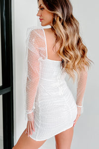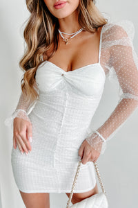 Kissed By Cupid Swiss Dot Ruched Mini Dress (White)