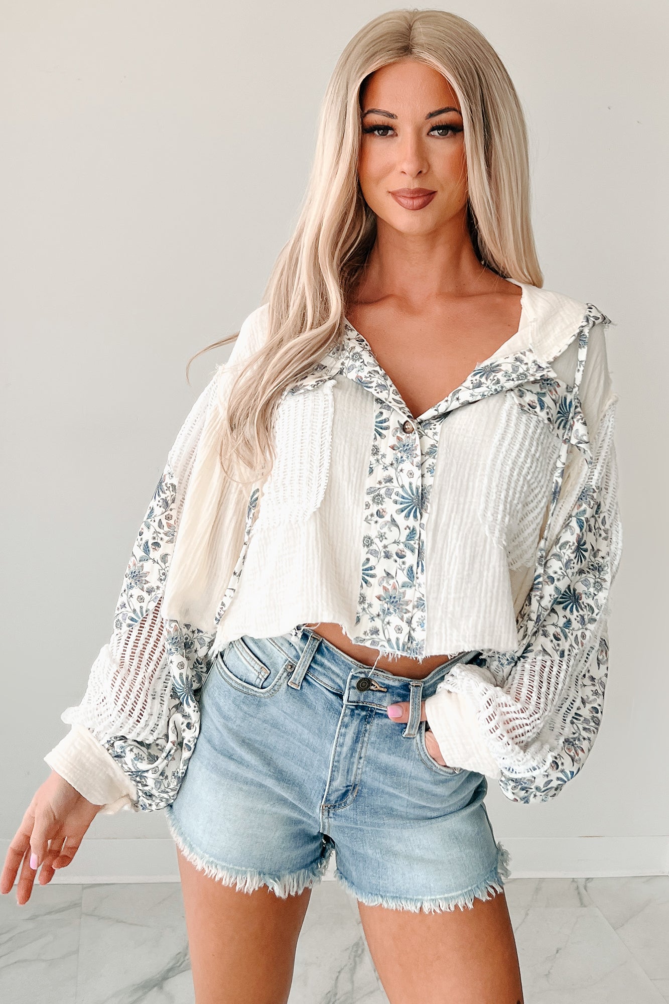 Knitted Paths Floral Crochet Hooded Top (Natural) - NanaMacs