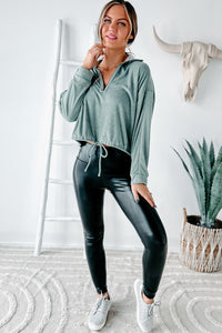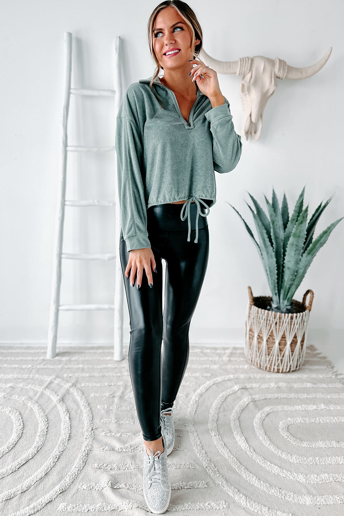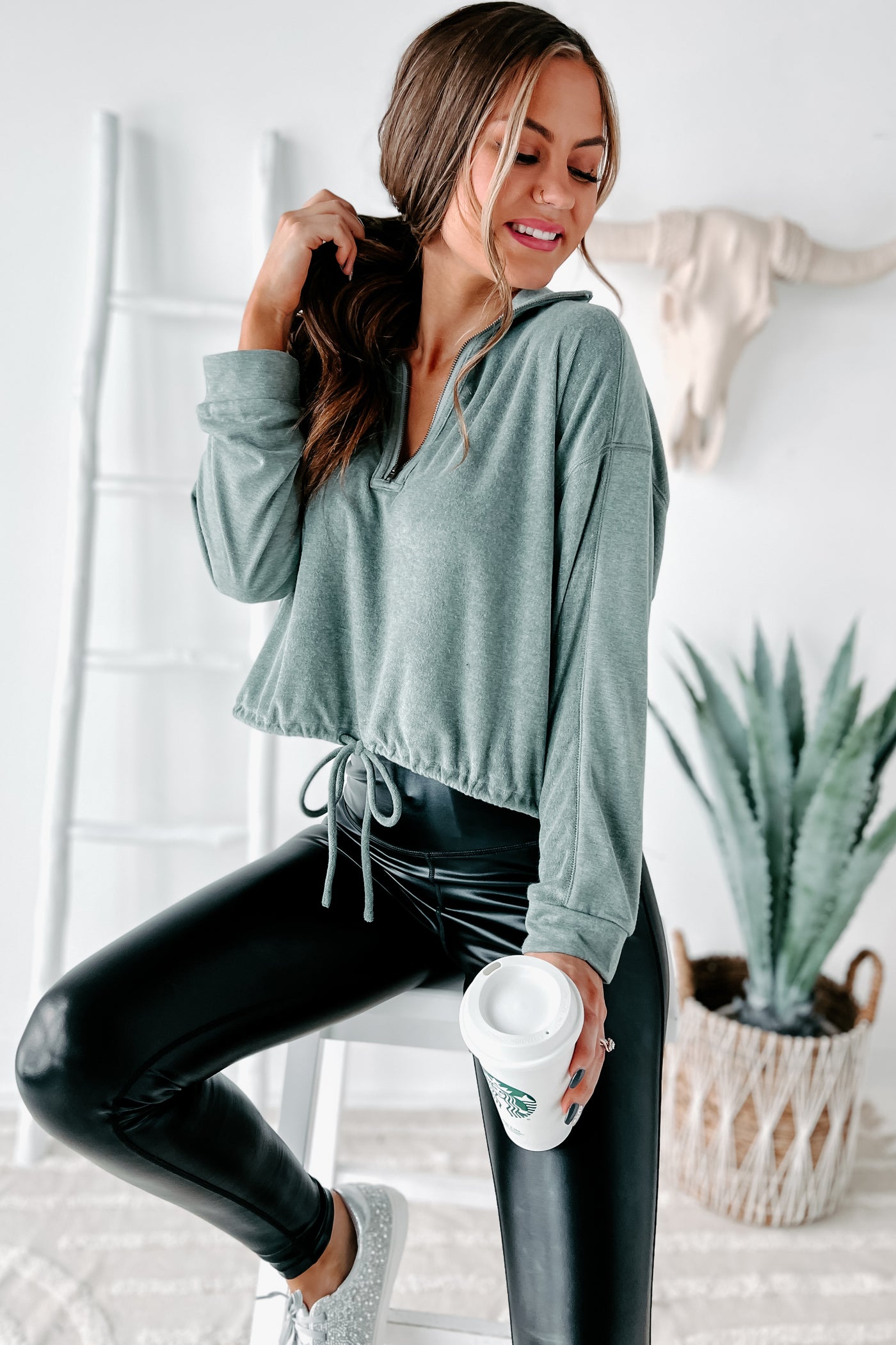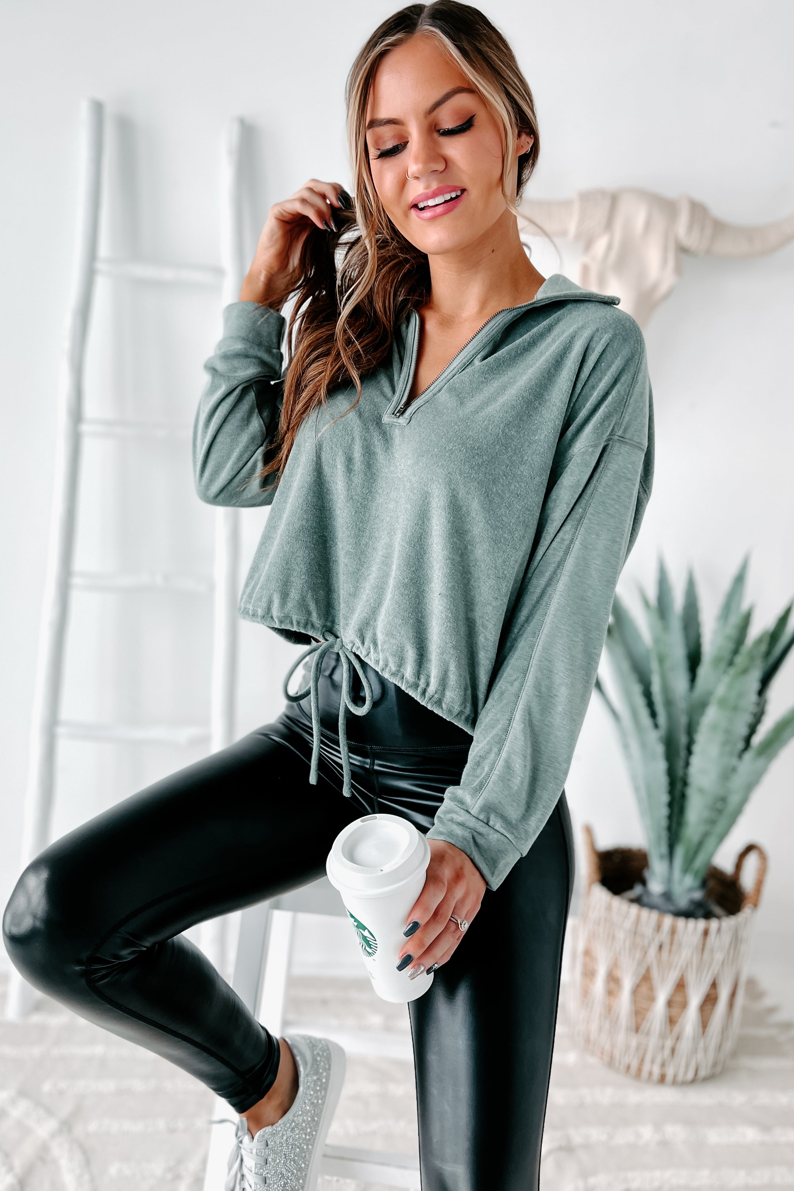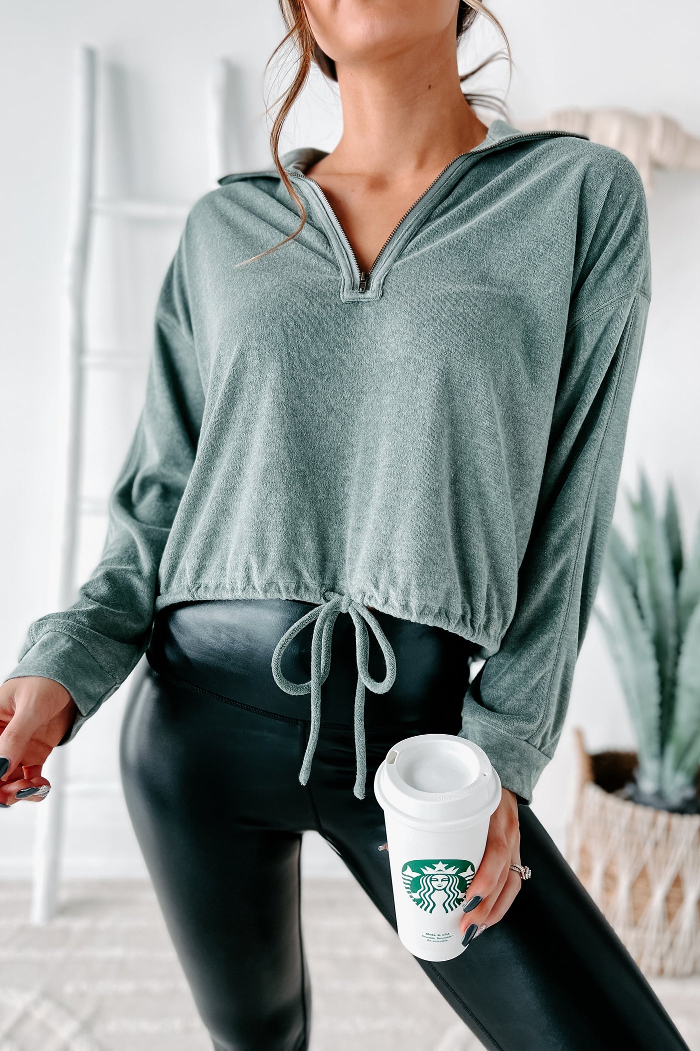 Say Hello To Your New Favorite Pull Over Top! This Olive Quater Zip, With A Drawstring Waist, Is Perfect To Wear With Anything!