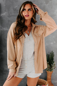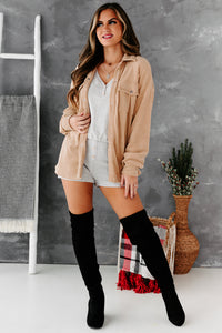Laid Back Lady Fleece Shacket (Beige) - NanaMacs