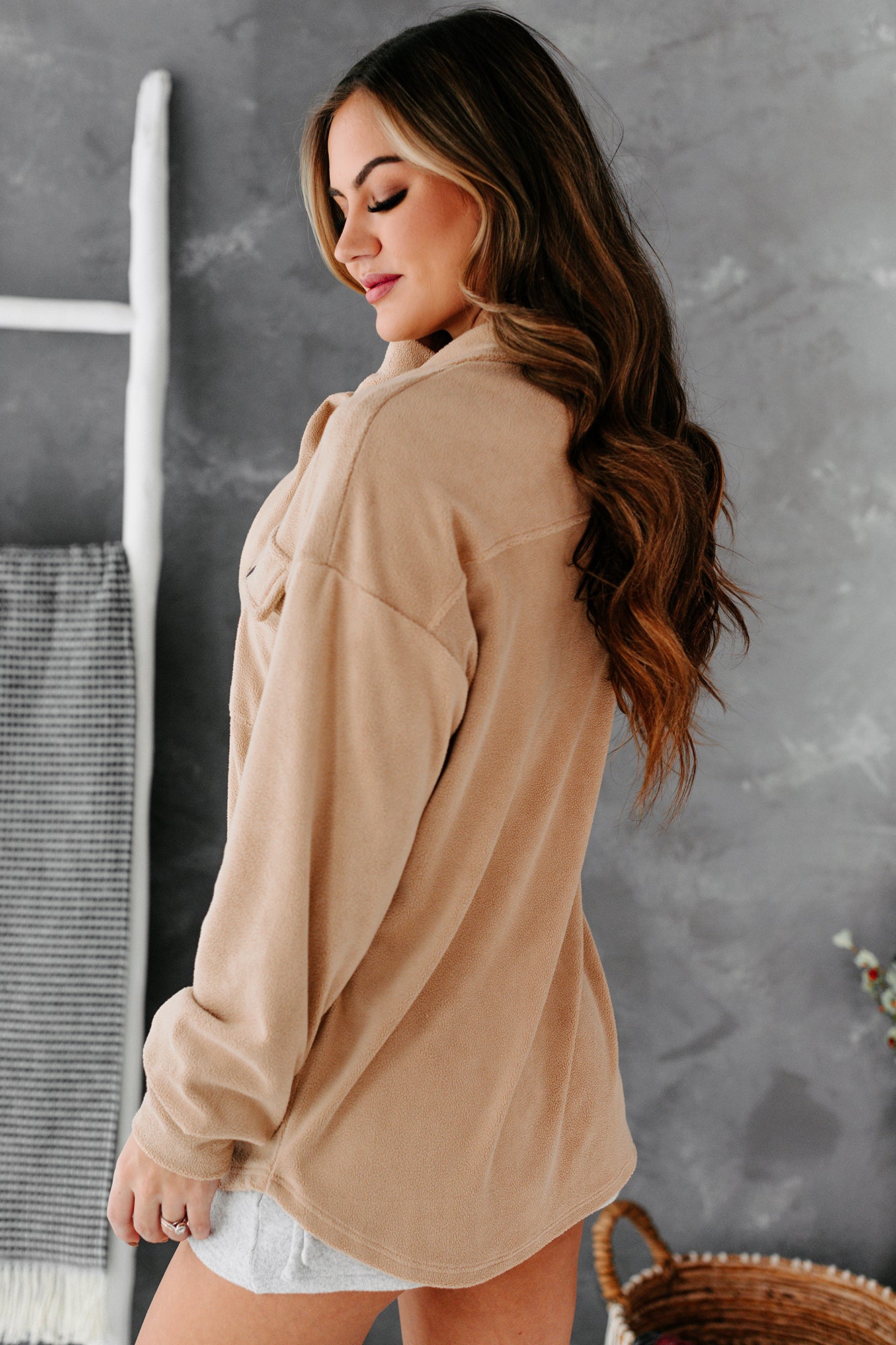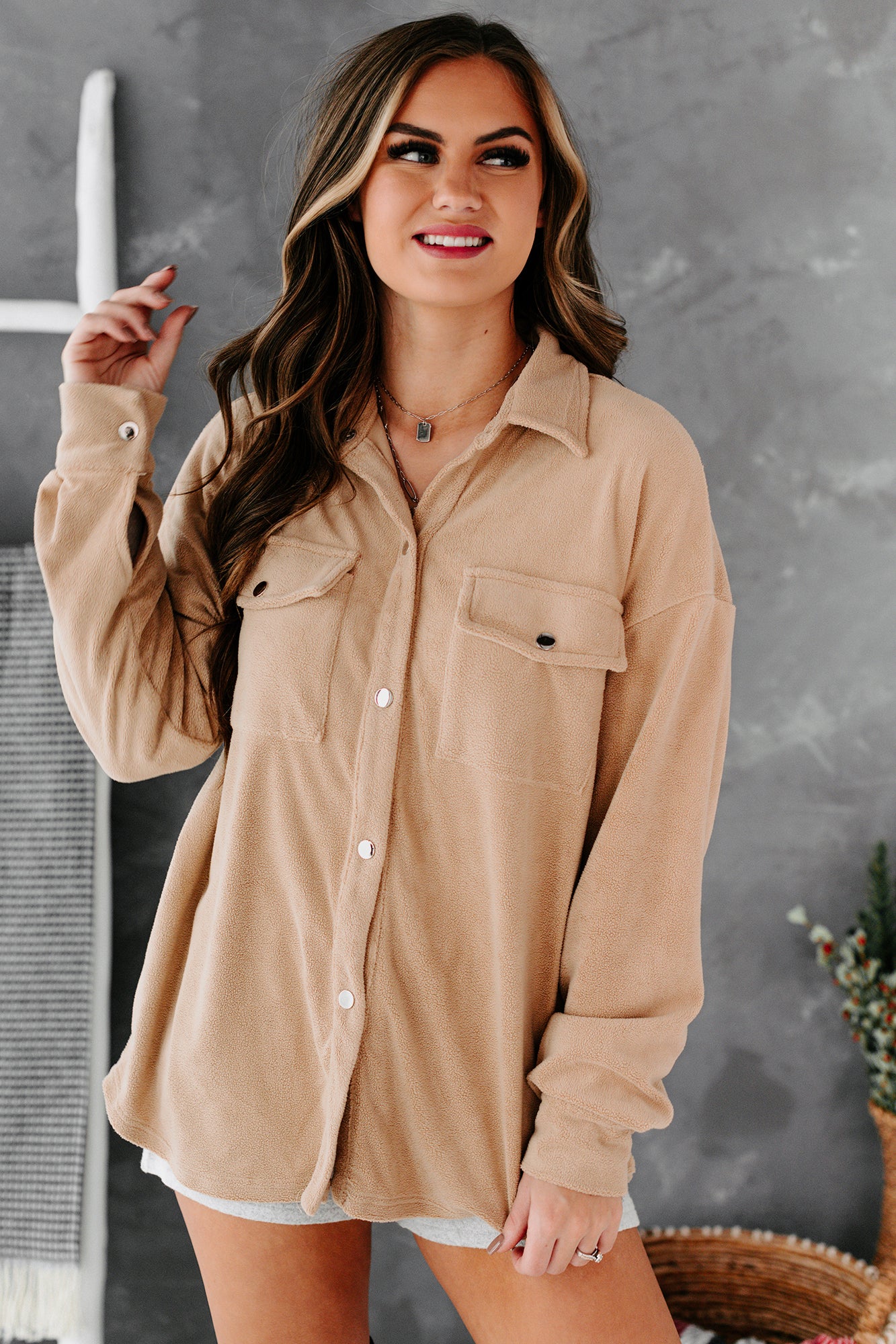 Cozy And Still Super Cute, You're Gonna Want This Beige, Button-Front, Fleece, Shacket!