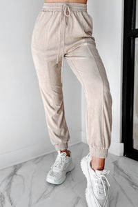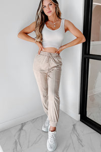 Leave You Lounging Faux Suede Joggers (Beige) - NanaMacs