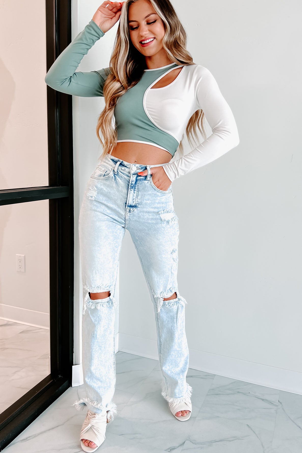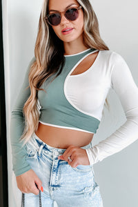 Leave Your Mark Colorblock Long Sleeve Crop Top (Olive/Bone) - NanaMacs