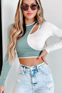 Leave Your Mark Colorblock Long Sleeve Crop Top (Olive/Bone)