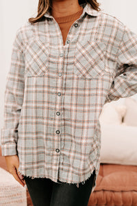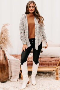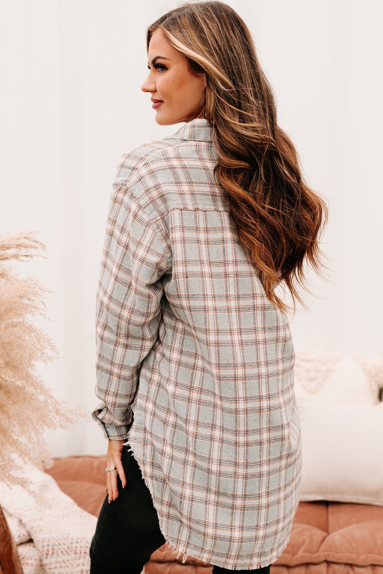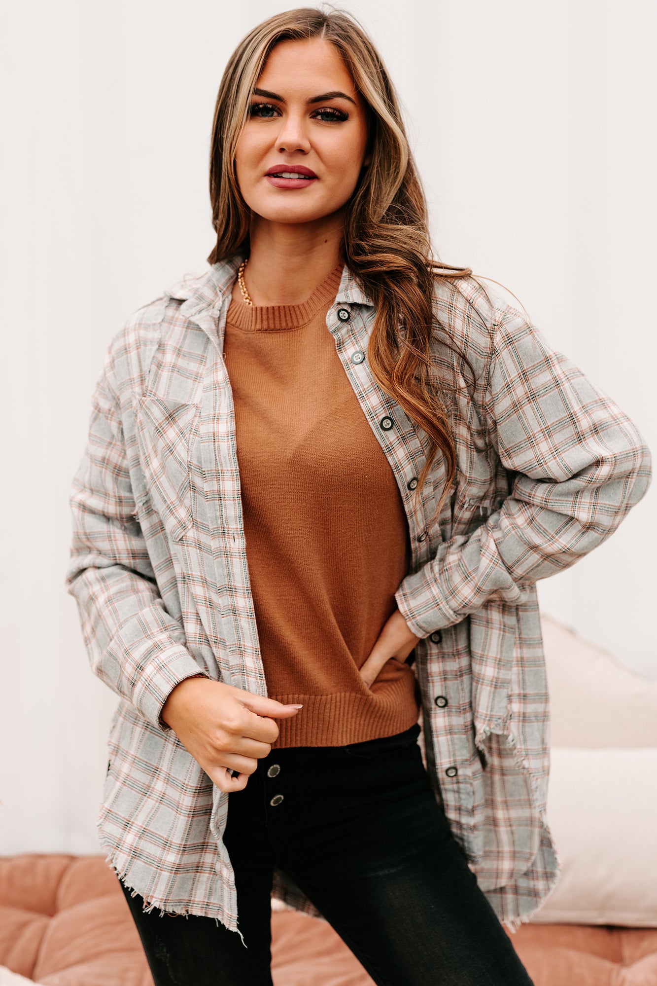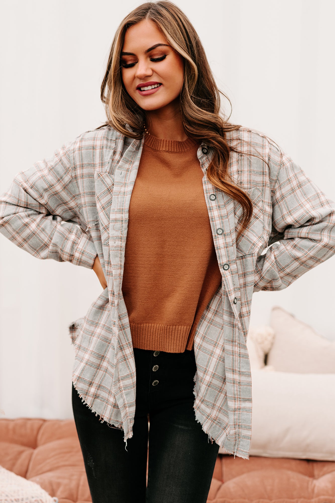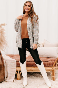 This Grey Plaid, Long Sleeve Top Is A Great Staple To Have In Your Closet!