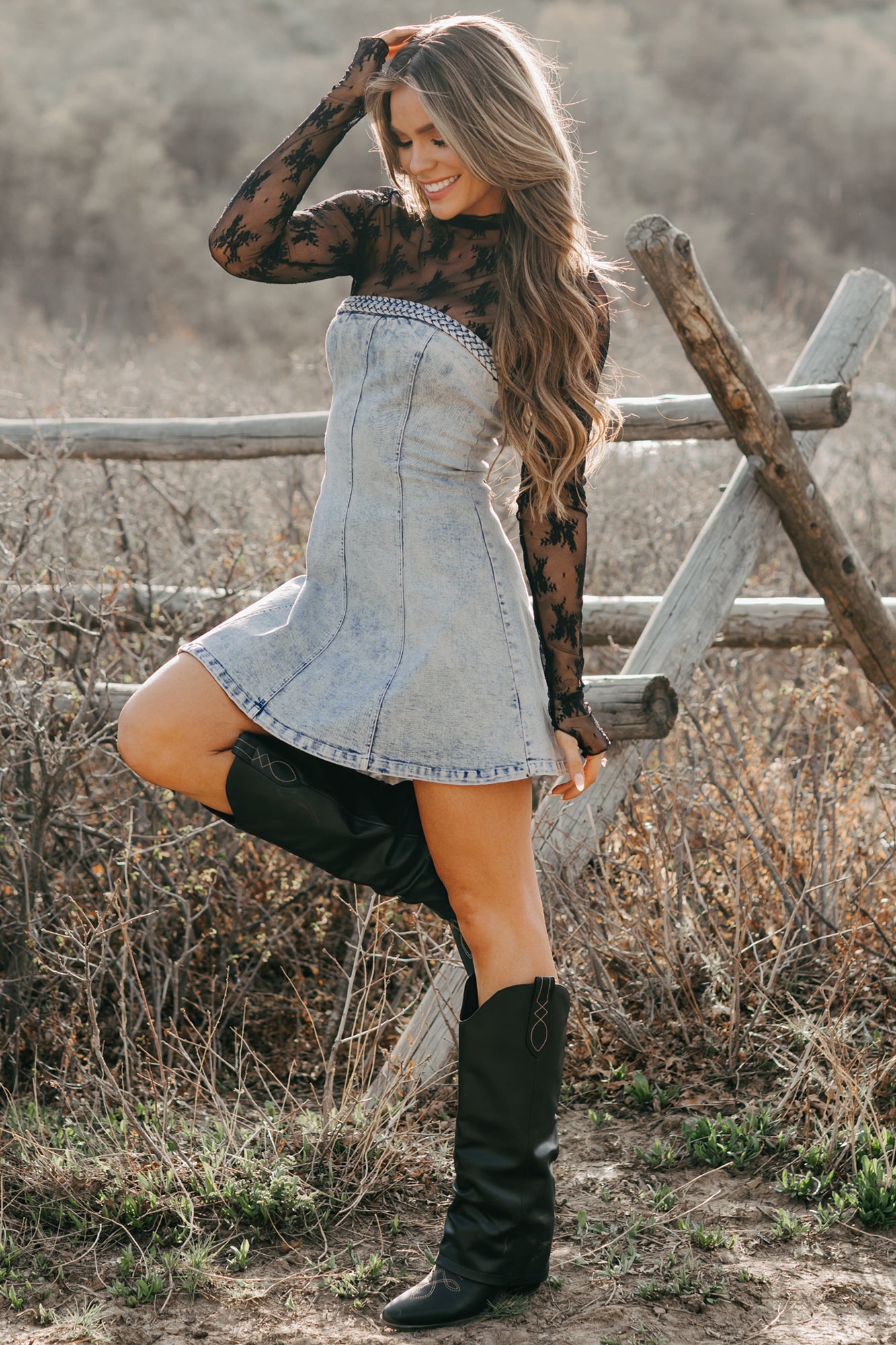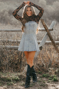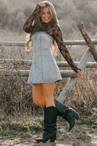 Letting It Go Strapless Denim Mini Dress (Light Denim)