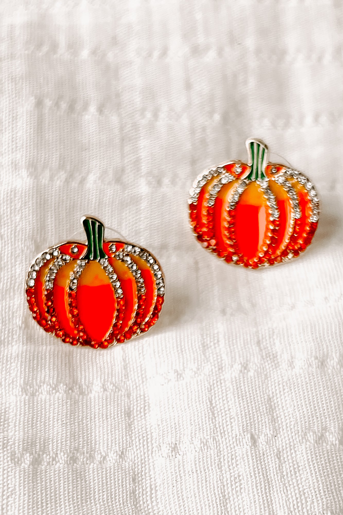 Life Is Gourd Rhinestone Pumpkin Earrings (Orange) - NanaMacs