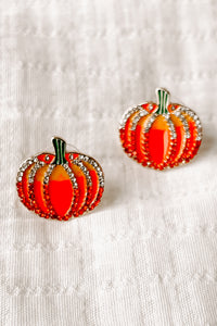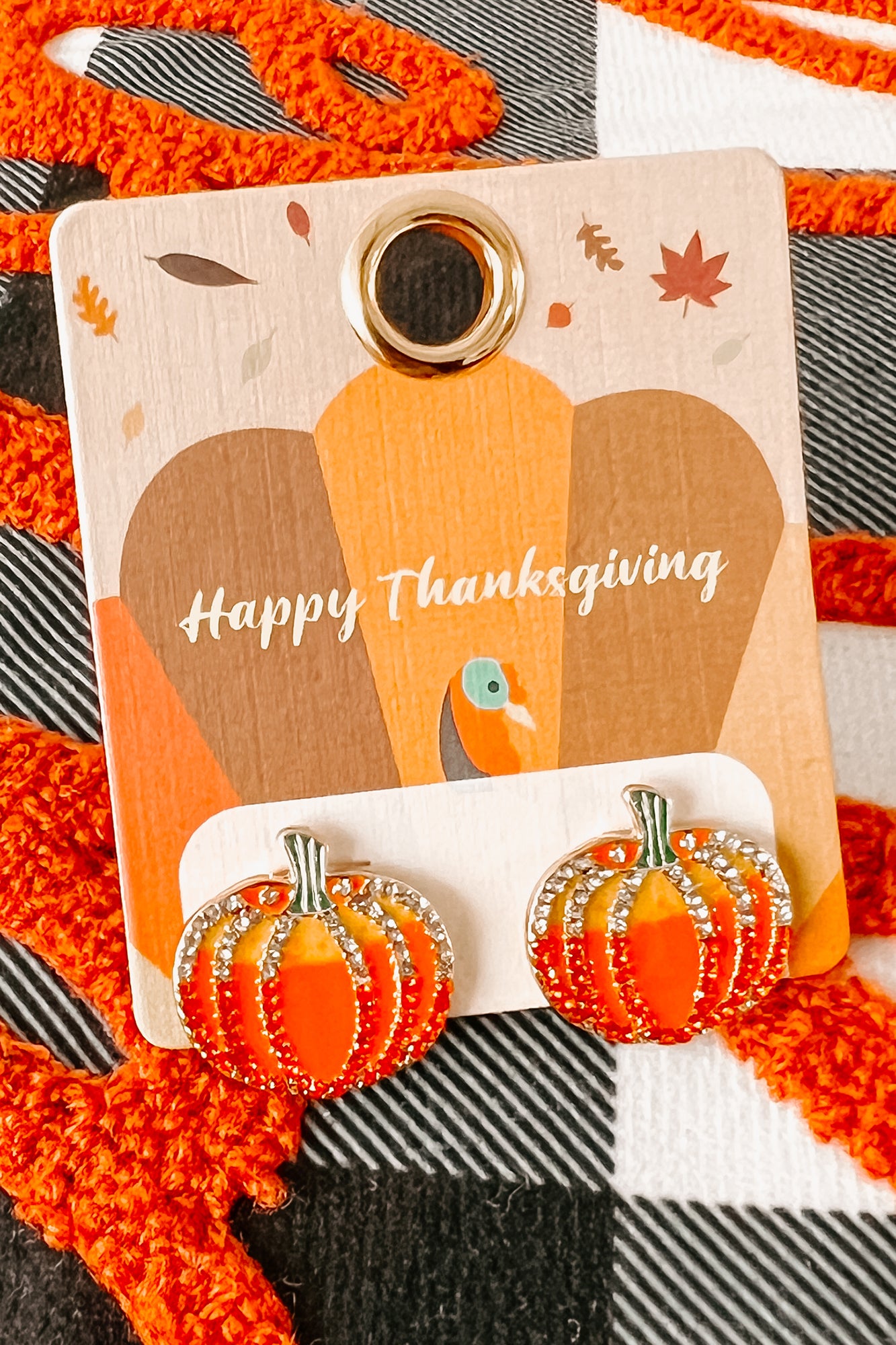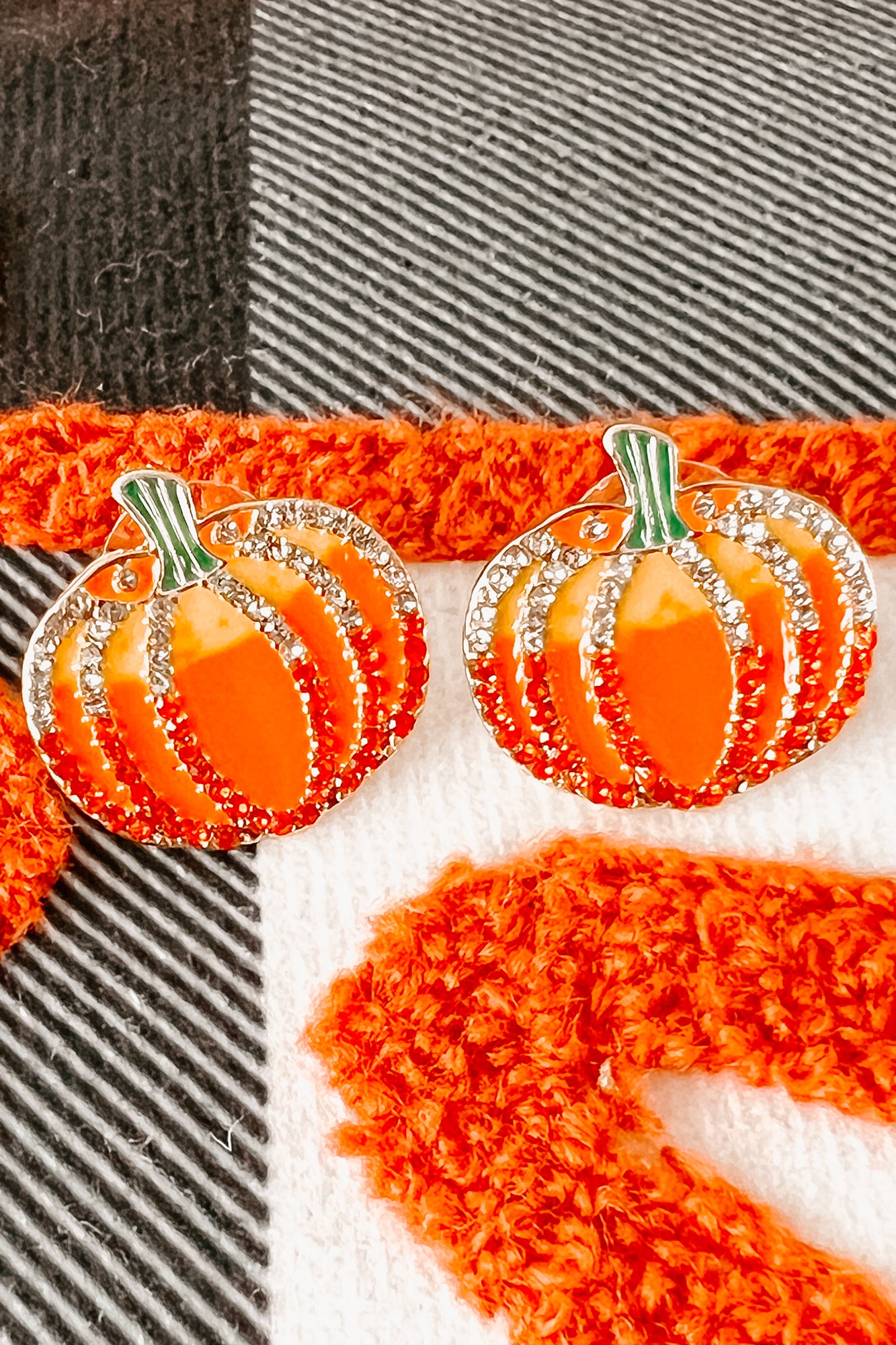 Life Is Gourd Rhinestone Pumpkin Earrings (Orange)