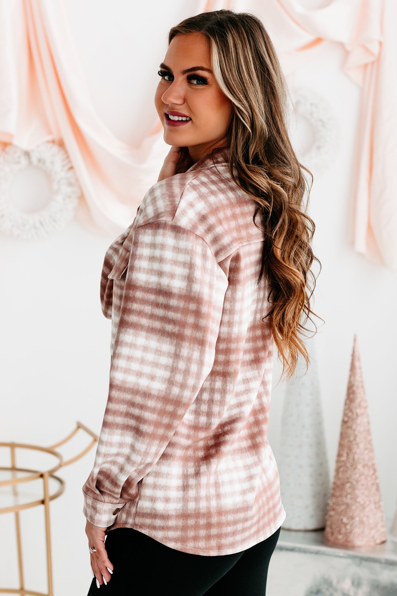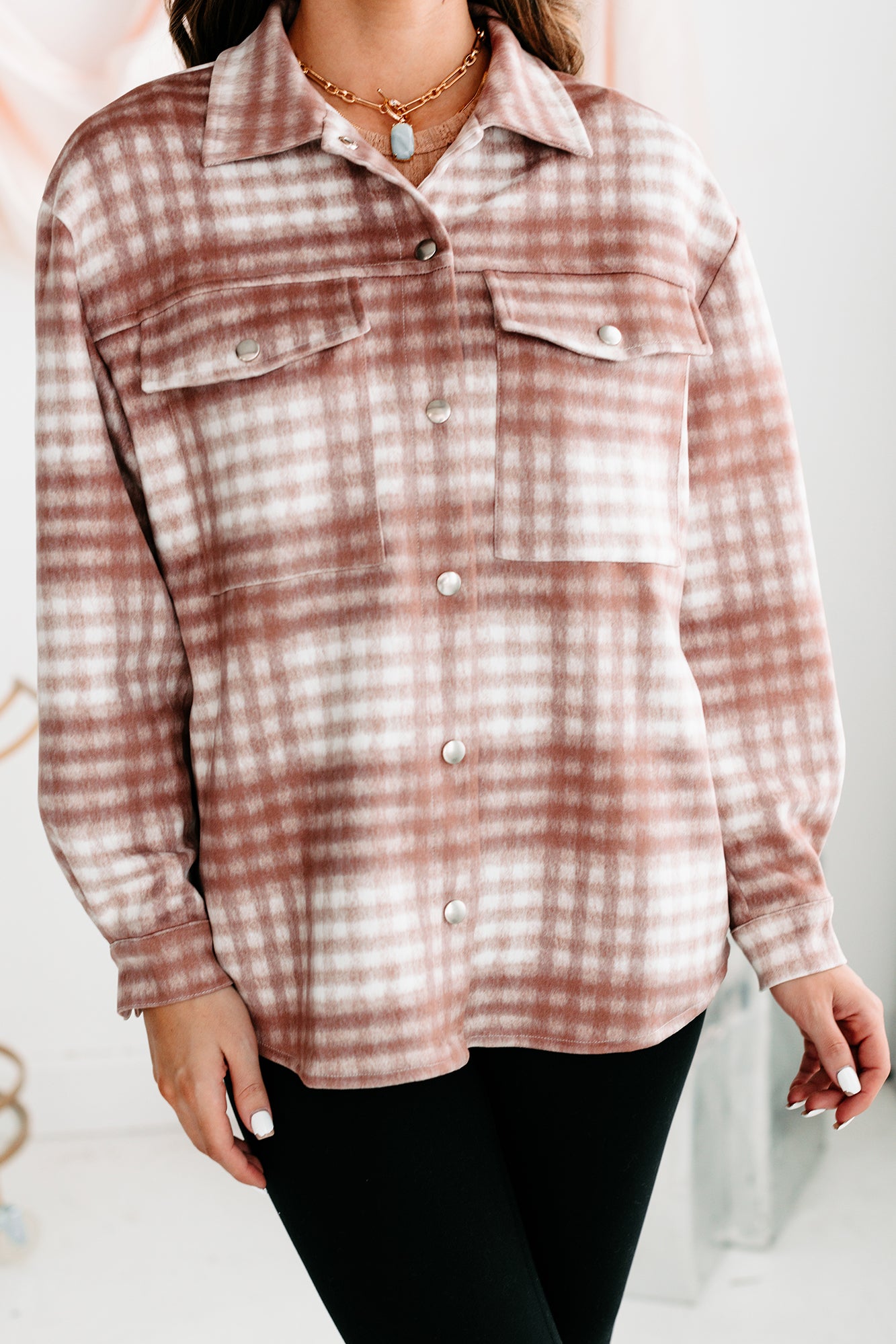 This Faux Suede, Plaid Printed Shacket Is So Easy To Throw On Over Your Basics & Look Put Together!