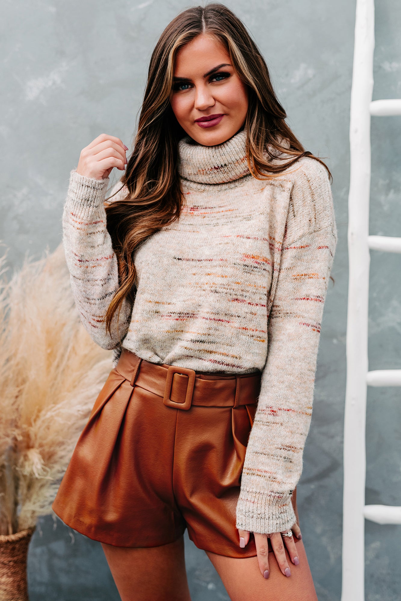 With classic fall colors while still keeping it neutral, this cowl neck knit sweater is perfect for pumpkin season!
