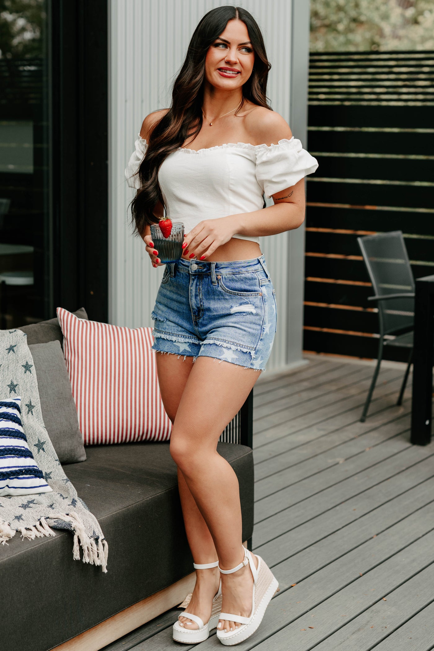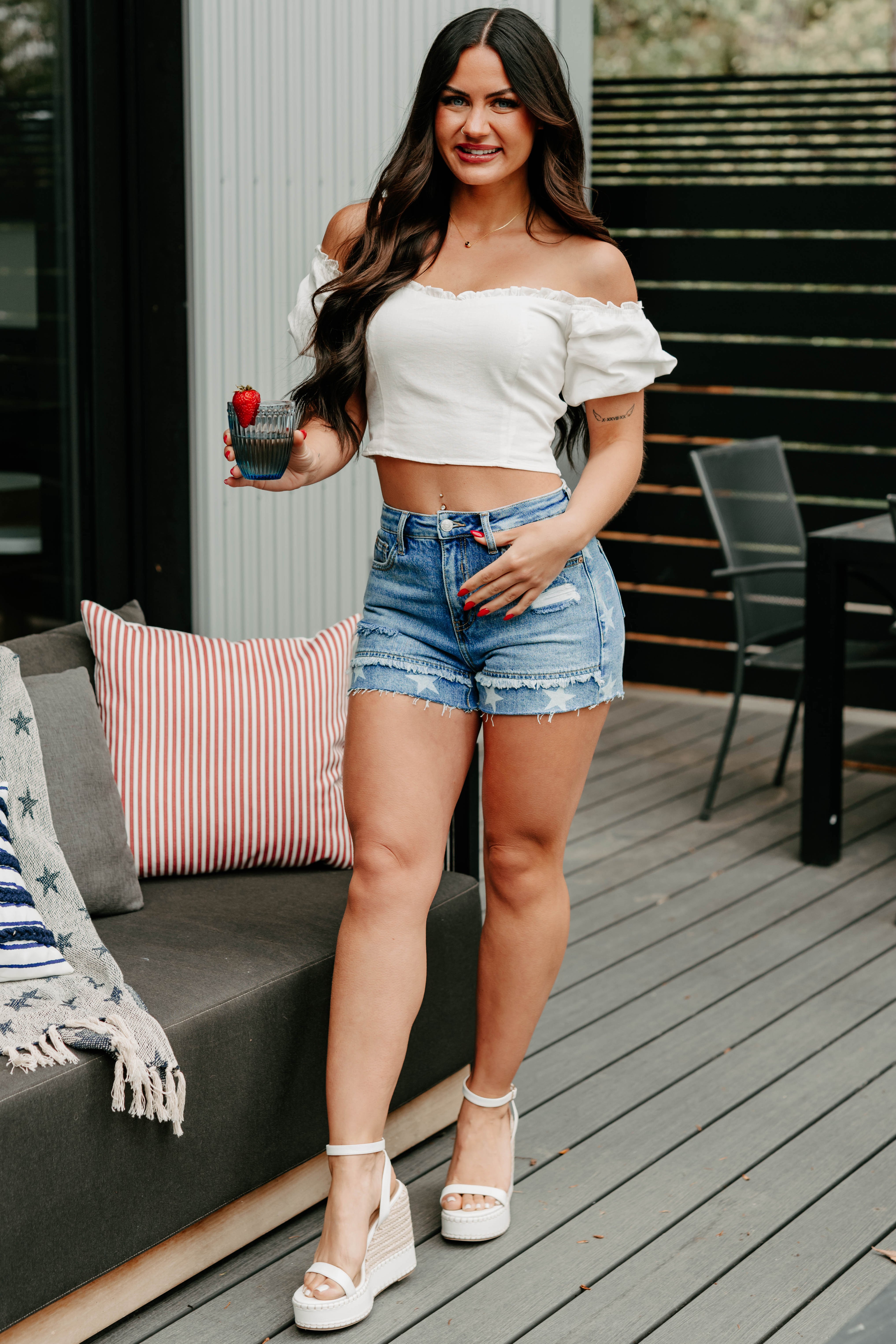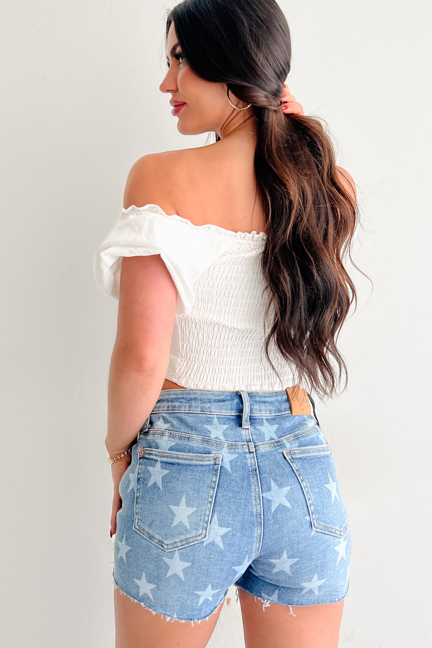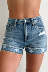 Linden Star Print Saige Denim Shorts (Medium Wash) - NanaMacs