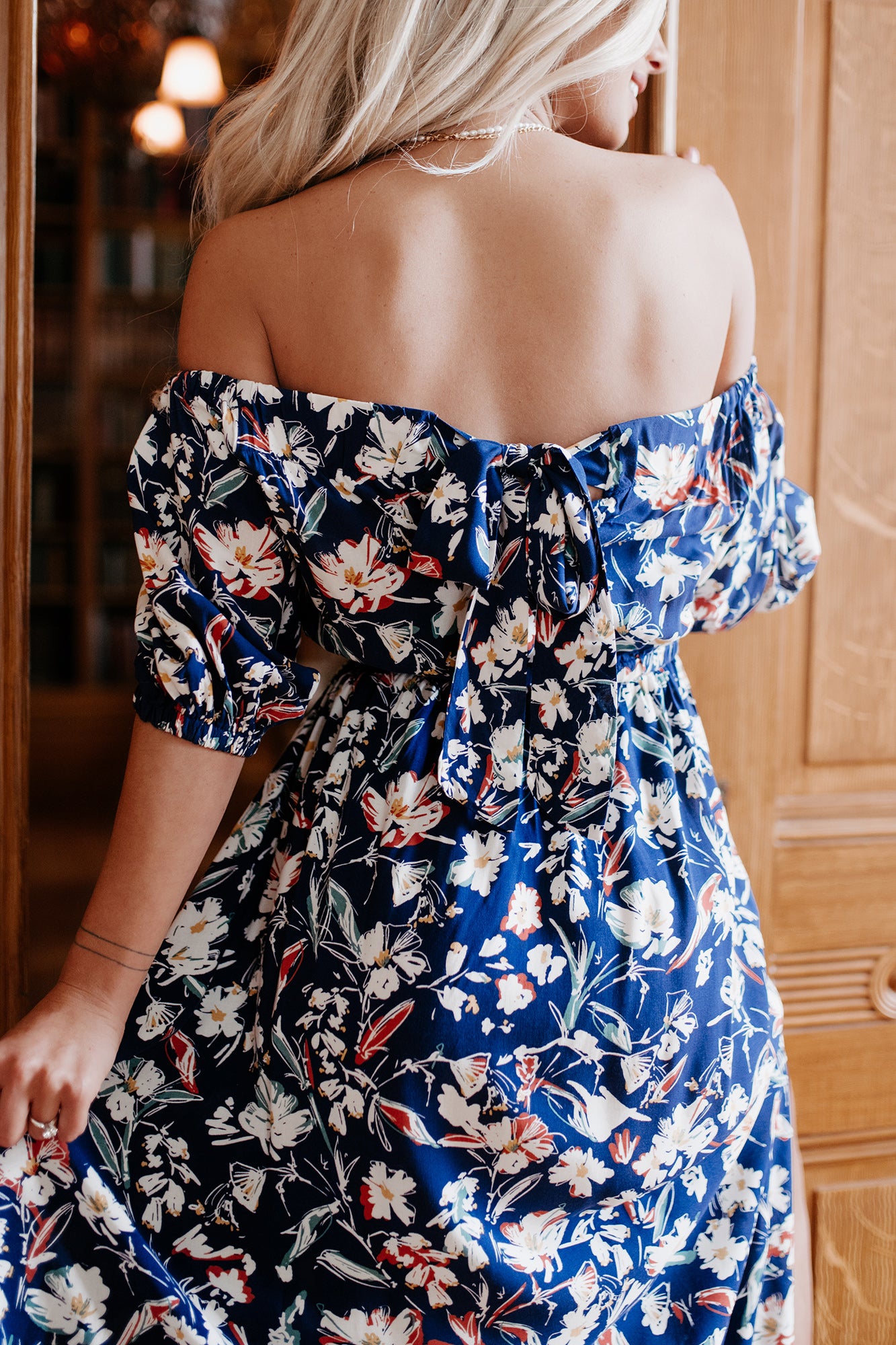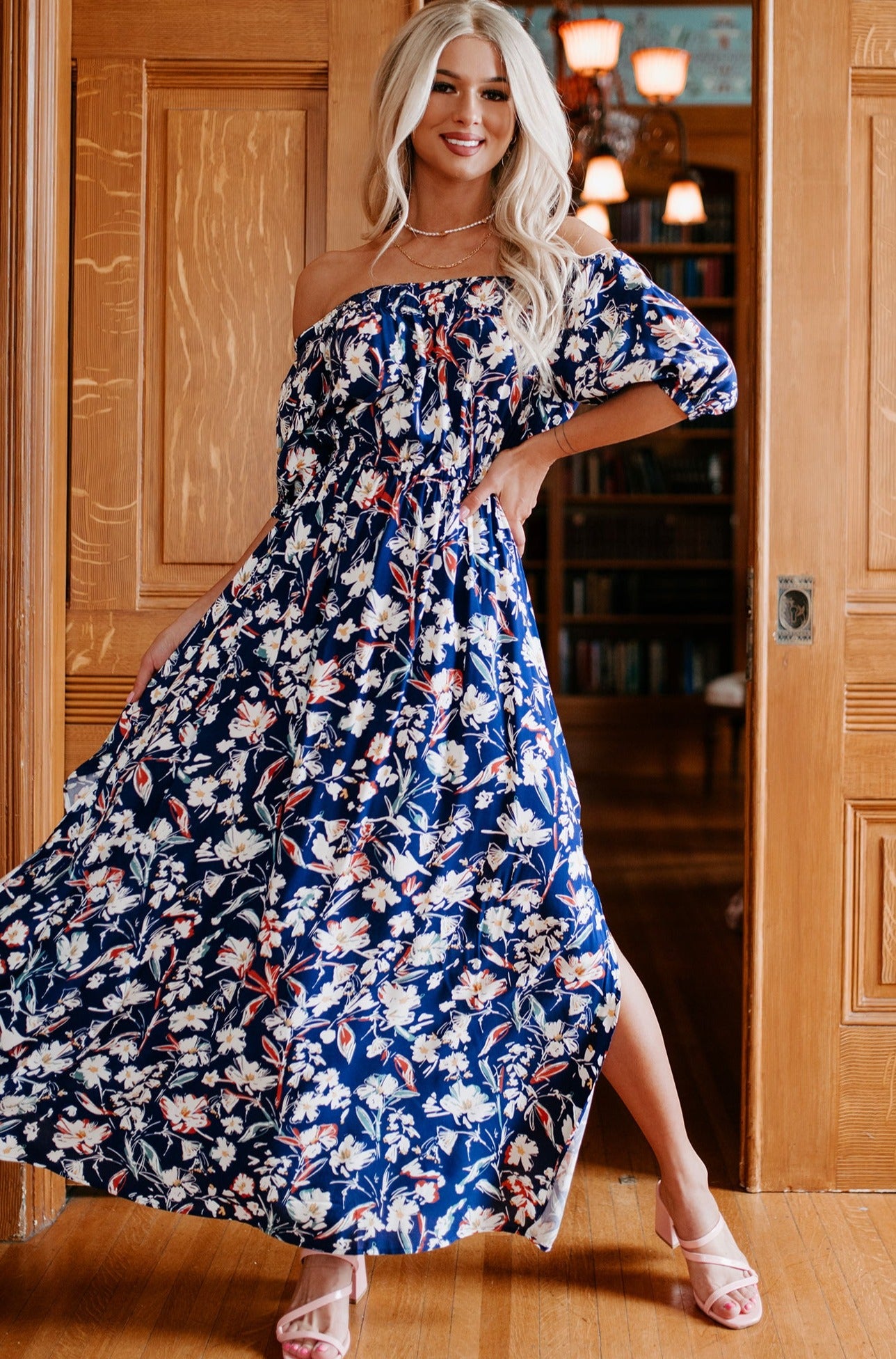 Linnea Floral Off The Shoulder Maxi Dress (Navy) - NanaMacs