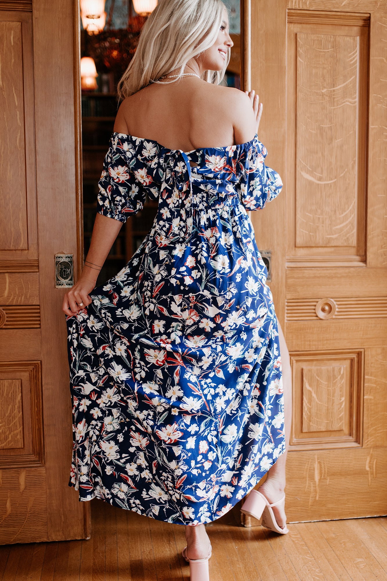 Linnea Floral Off The Shoulder Maxi Dress (Navy)