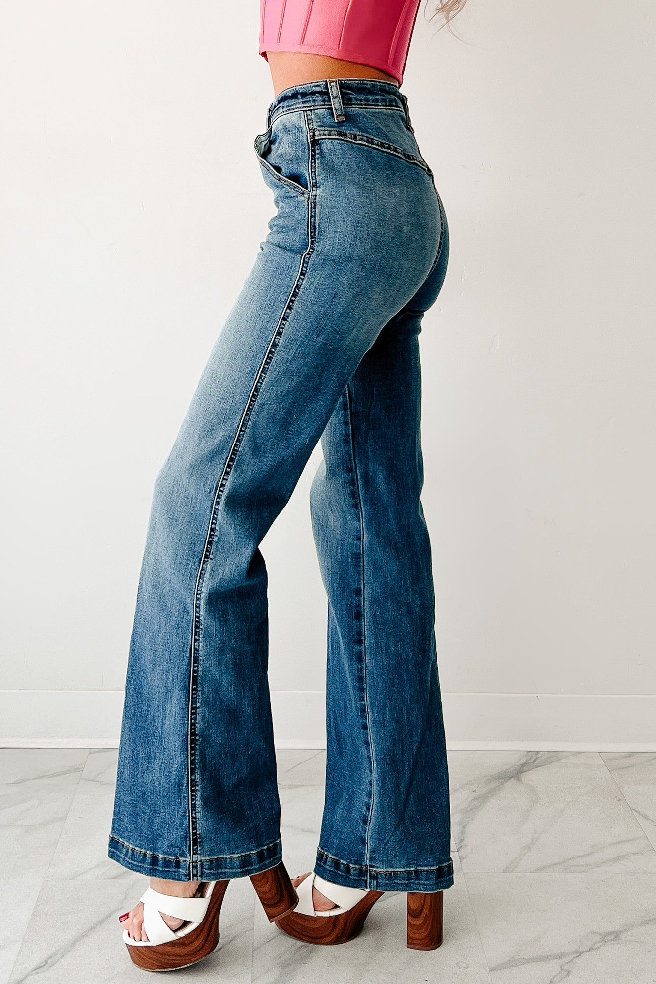 Liora High Rise Wide Leg Indigo Reign Jeans (Medium Blue) - NanaMacs