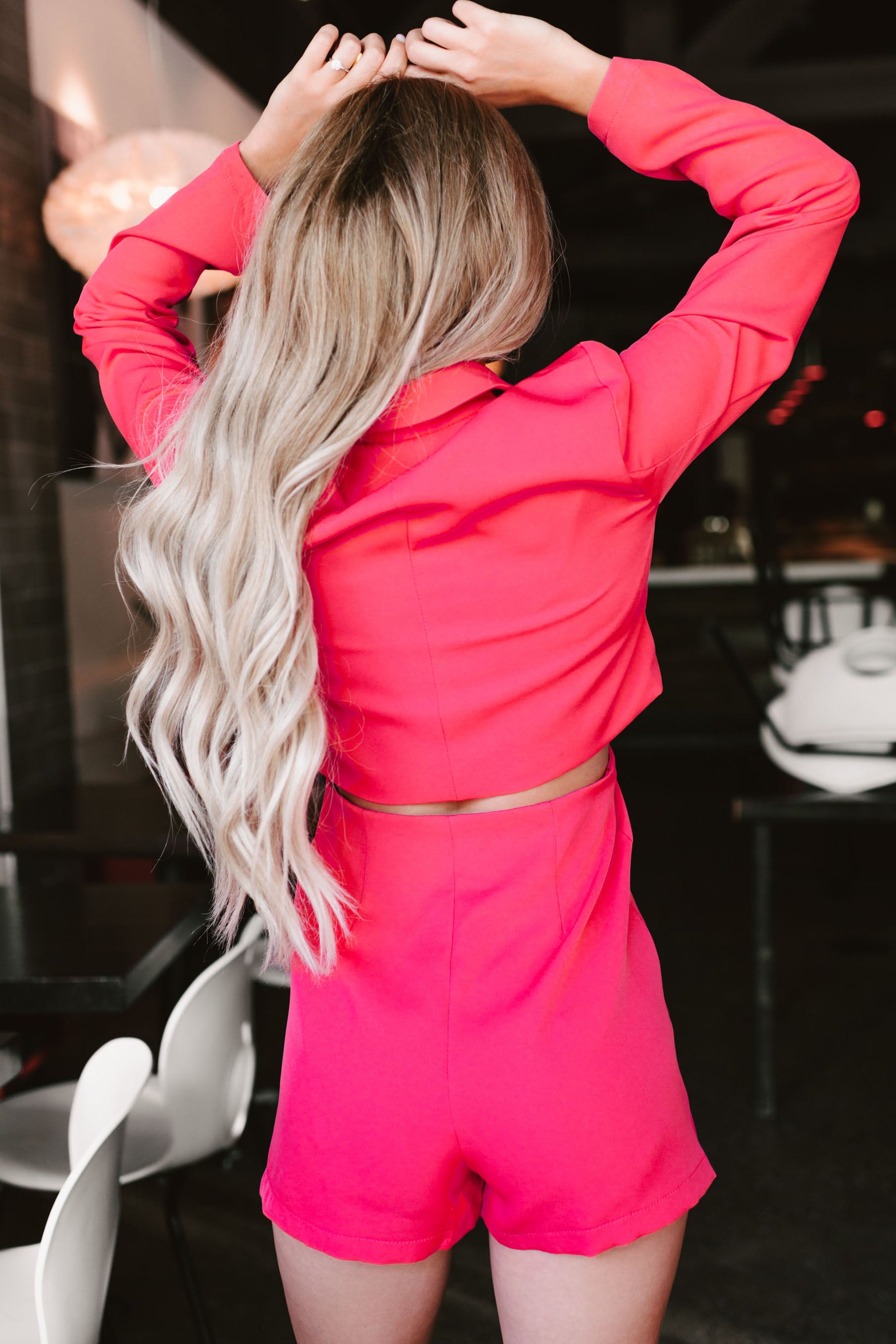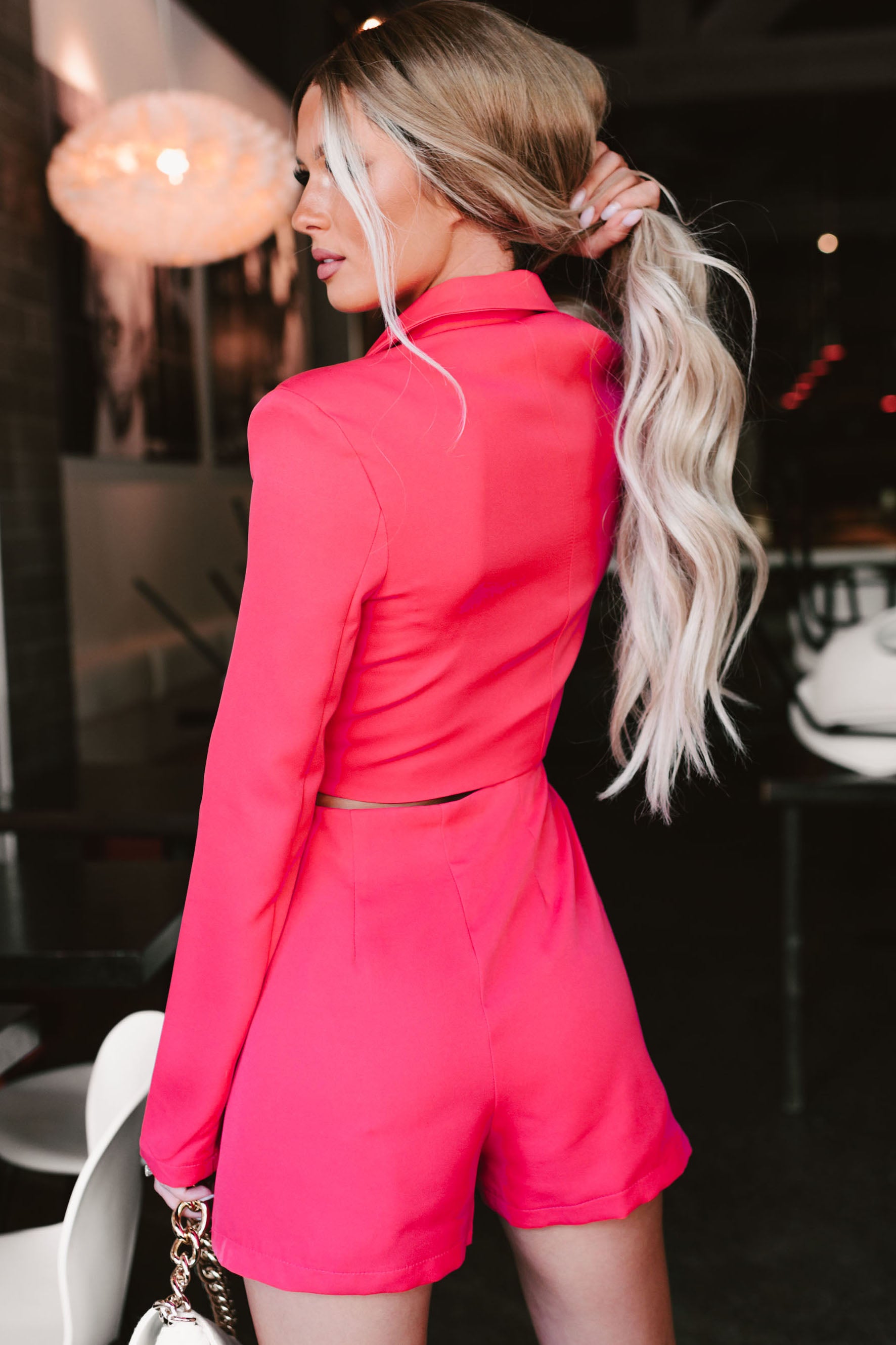 Living In My Own World Cut-Out Blazer Romper (Hot Pink)