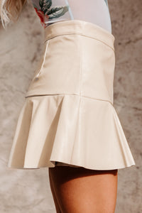 Lose My Number Faux Leather Ruffled Mini Skort (Ecru)