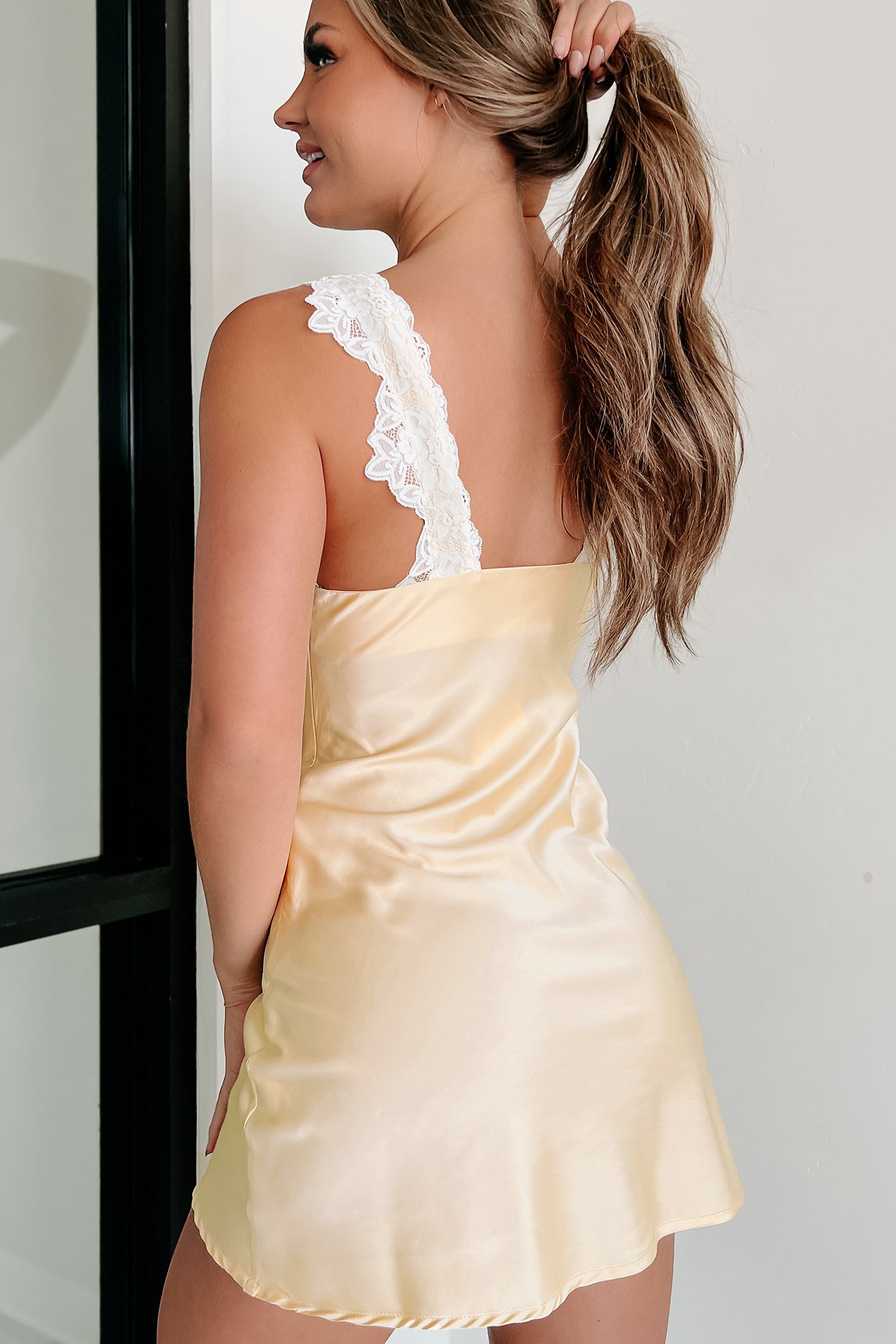 Lost In Translation Lace Trim Satin Mini Dress (Yellow)
