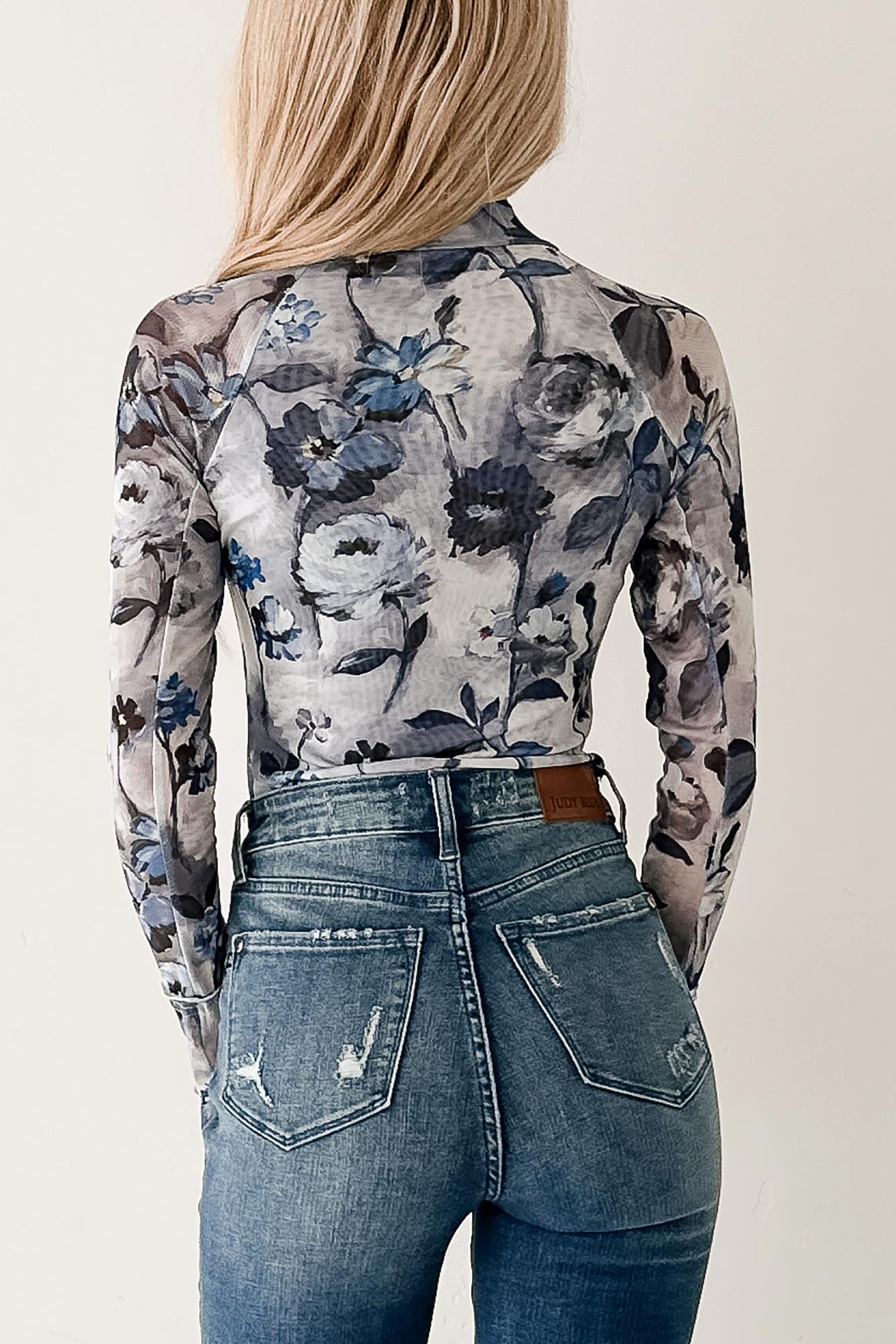 Love At Last Floral Mesh Long Sleeve Top (Retro Blue) - NanaMacs
