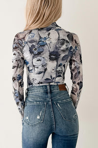 Love At Last Floral Mesh Long Sleeve Top (Retro Blue)