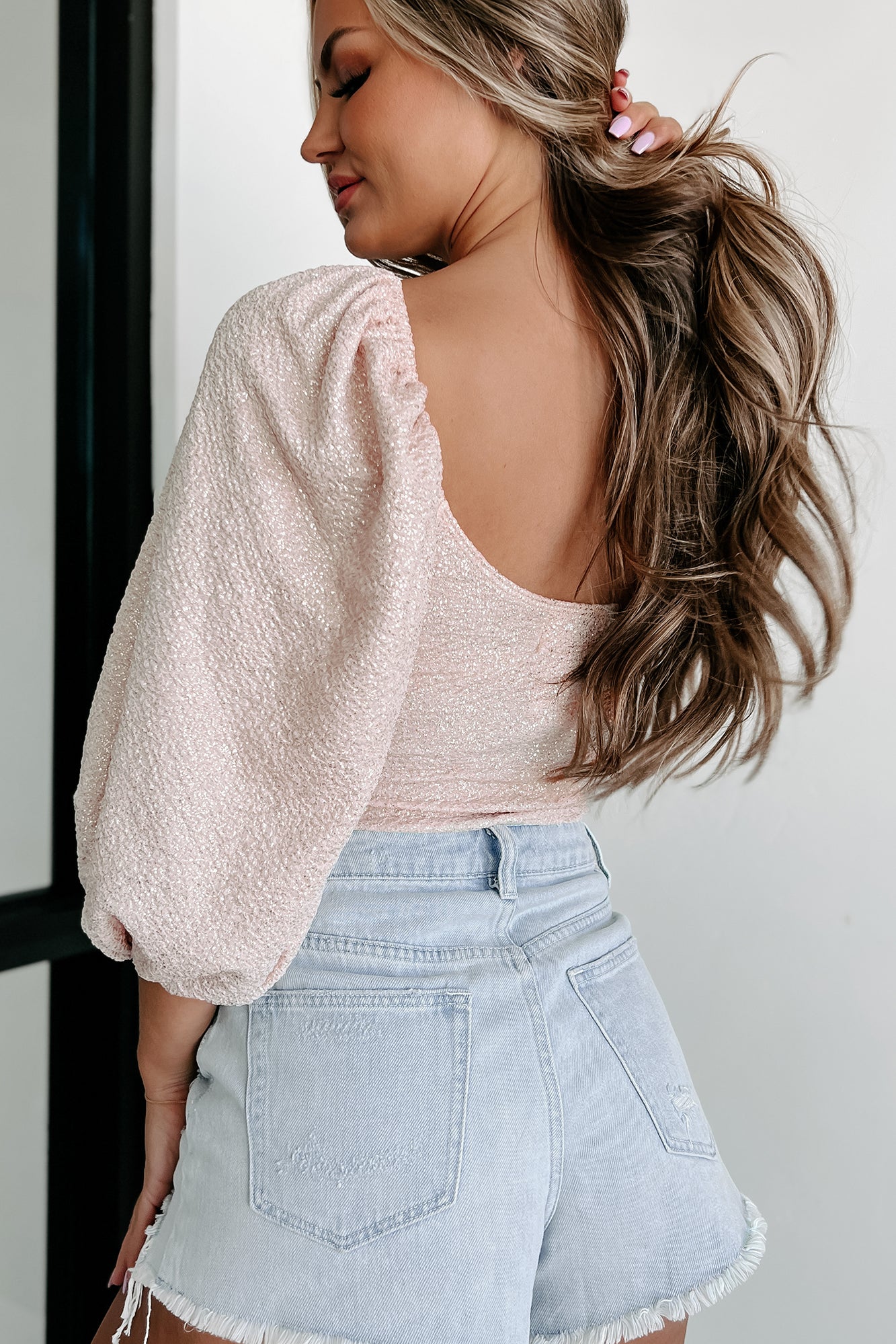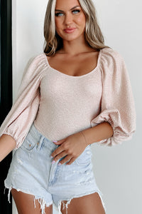 Love Being Extra Balloon Sleeve Textured Bodysuit (Champagne)