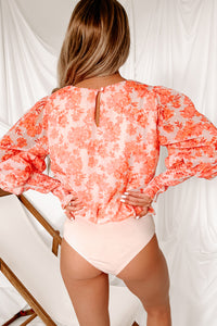 Loved You All This Time Floral Bishop Sleeve Bodysuit(Pink)