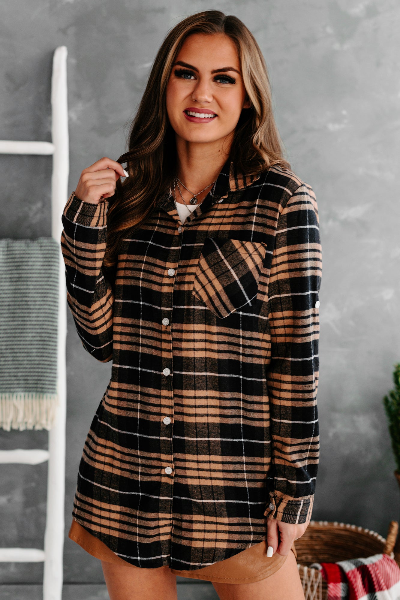 Lovely Weather Plaid Flannel Top (Navy) - NanaMacs