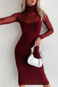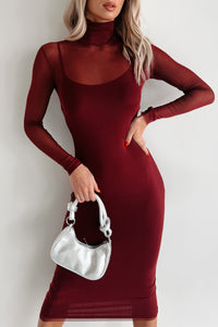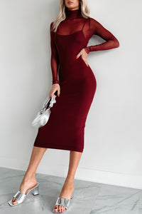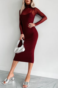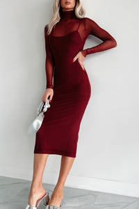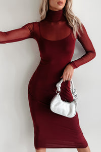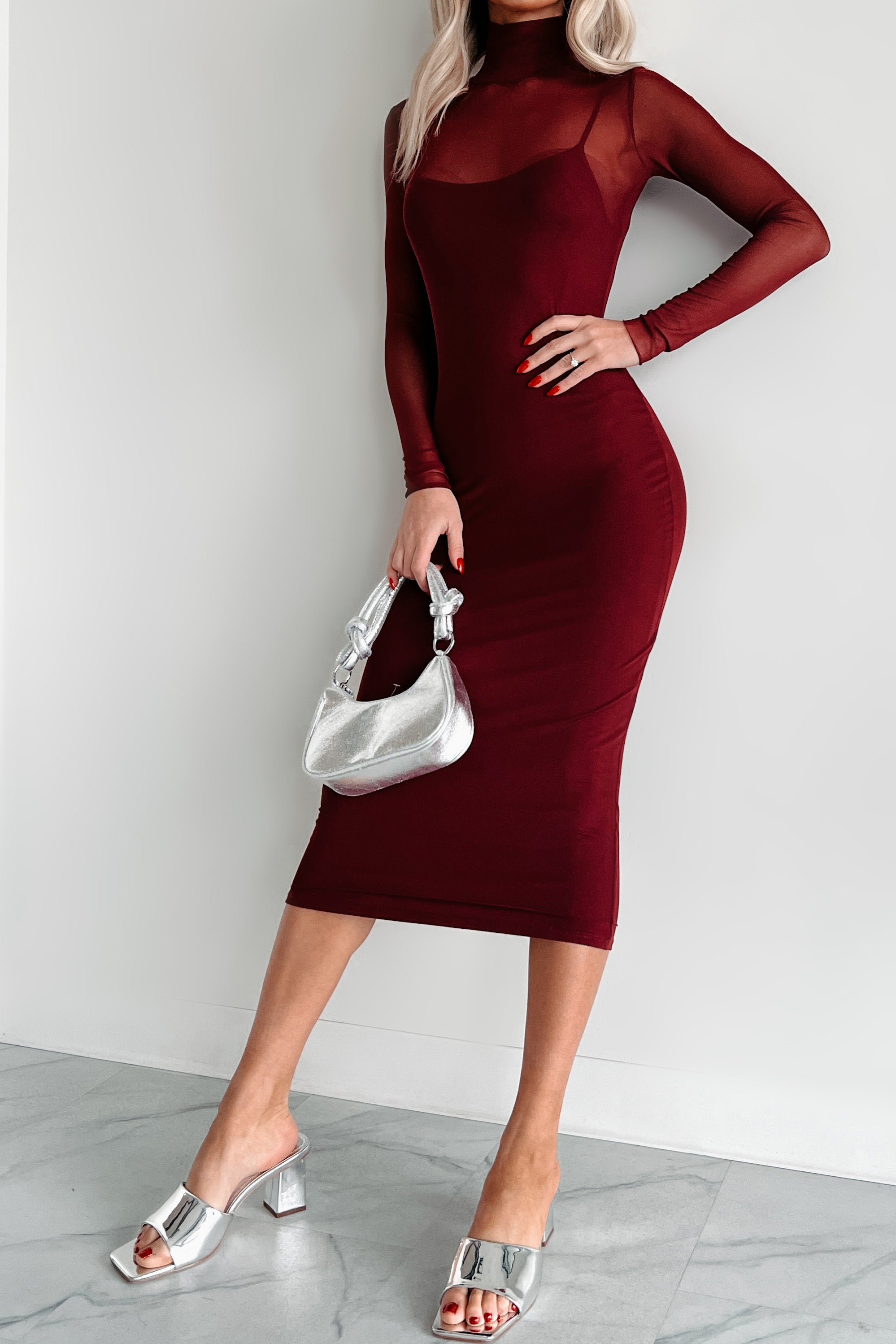 Loving Glances Mesh Midi Dress (Burgundy) - NanaMacs