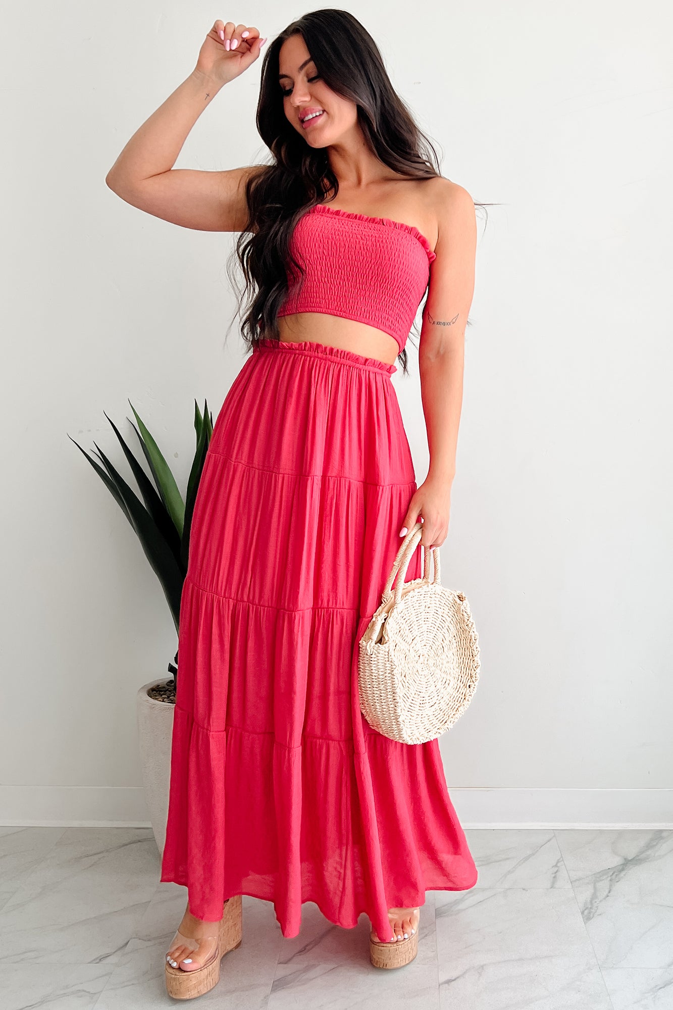 Low-Key Luxury Smocked Bandeau & Maxi Skirt Set (Coral Red) - NanaMacs