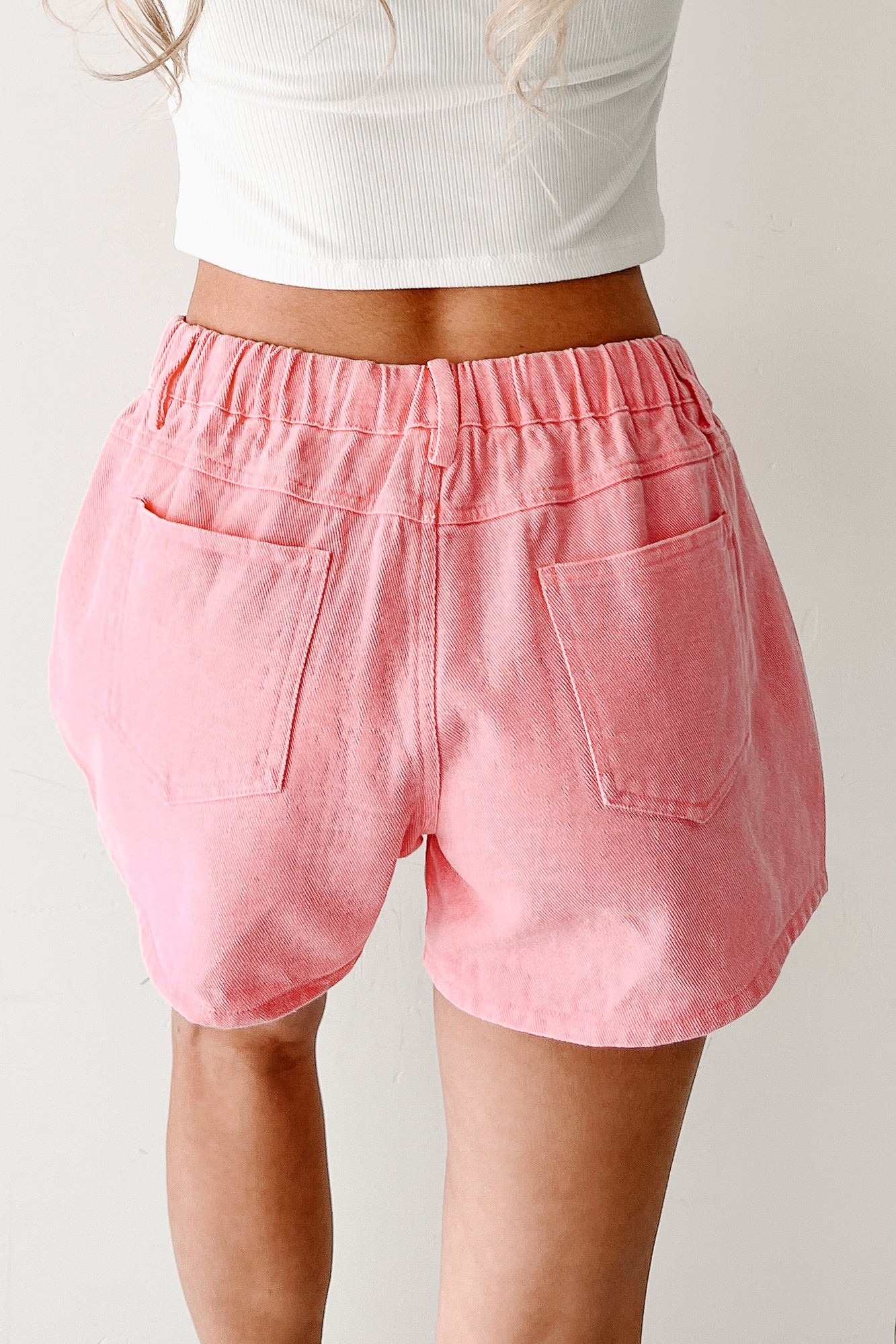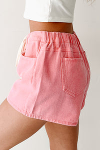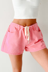 Lowkey Lovely Drawstring Denim Shorts (Pink)