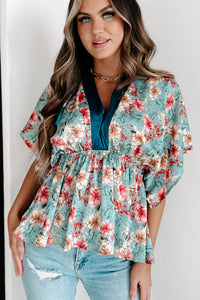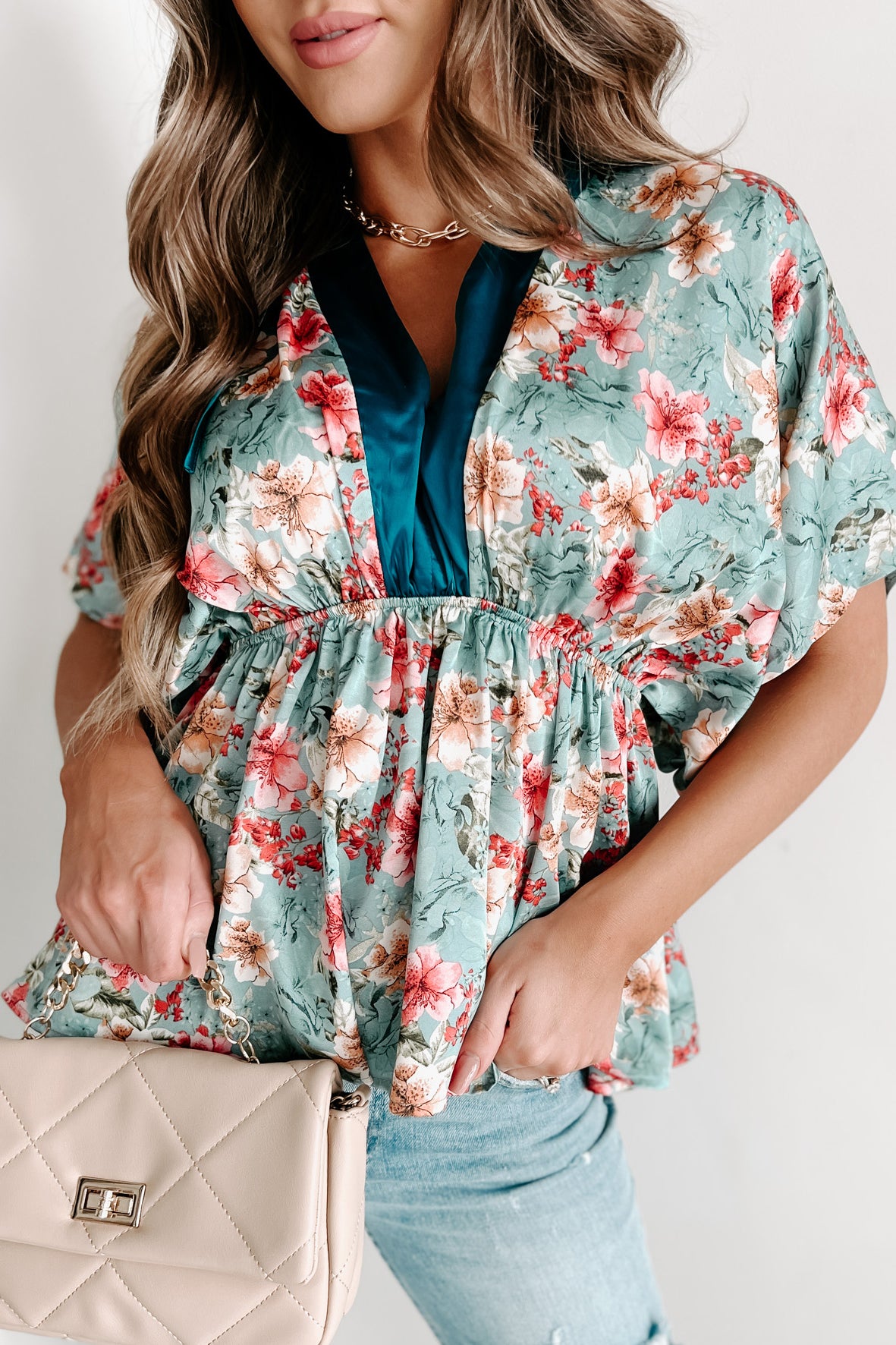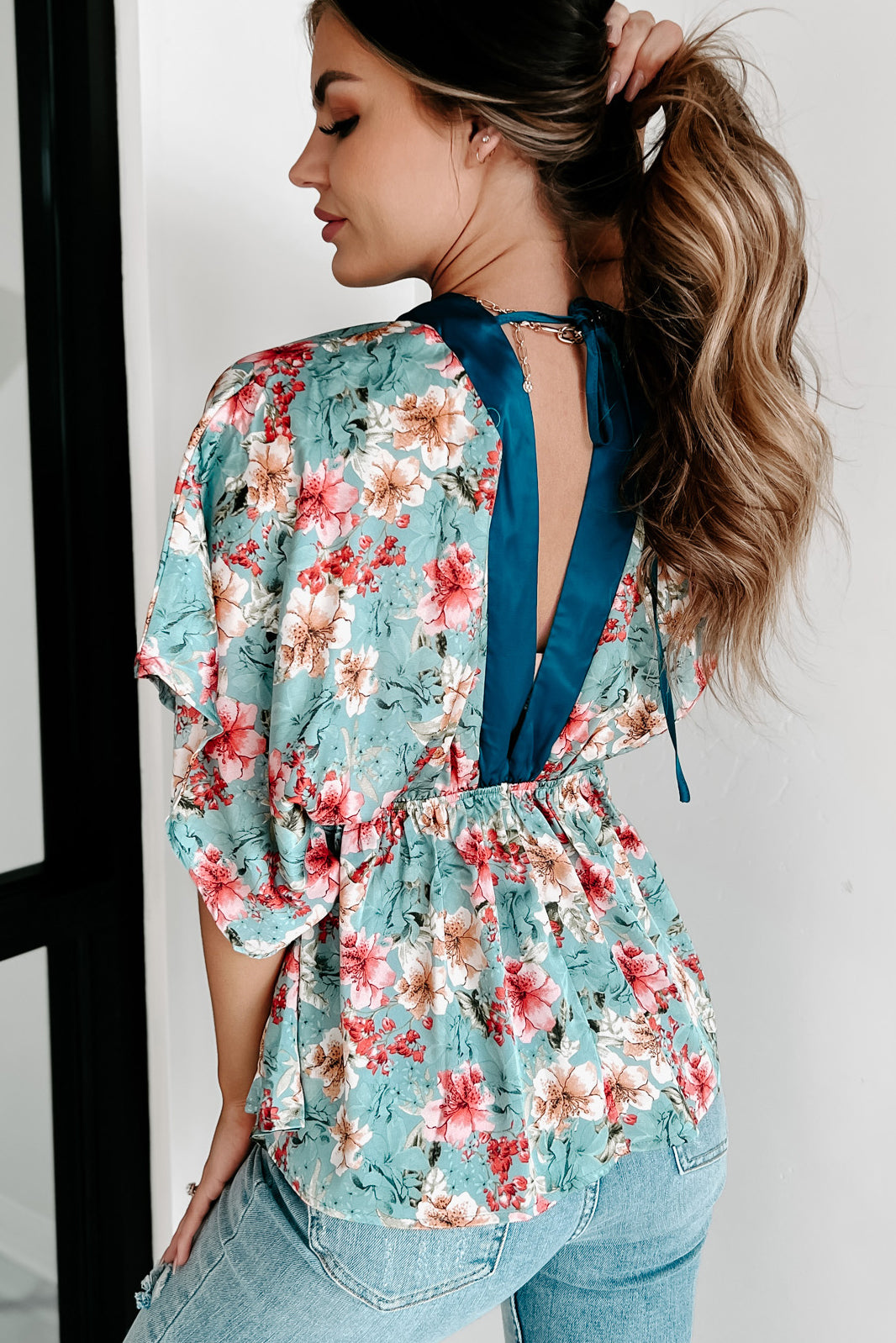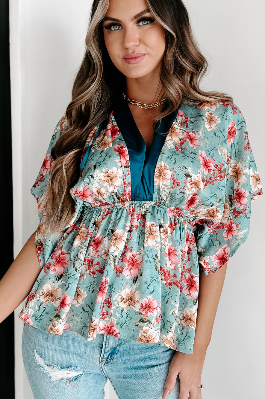 Magic Of Beginnings Floral Kimono Sleeve Top (Blue)