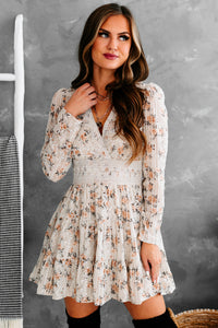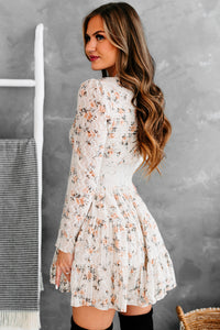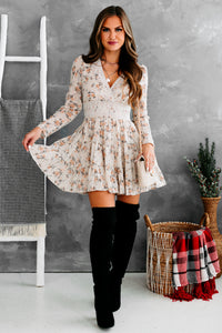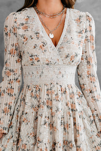 The Details On This Taupe, Floral Printed, Crochet Lace Dress Are Simply Gorgeous!