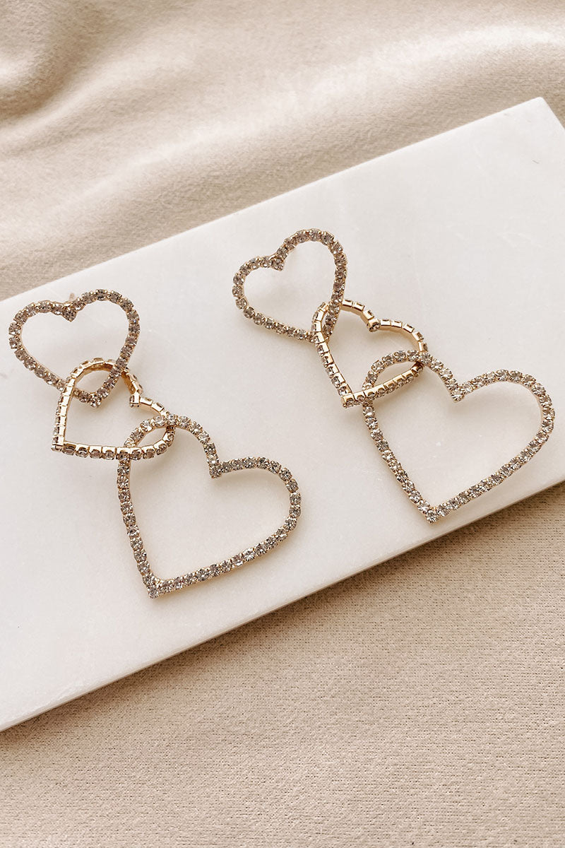 Major Heart Rhinestone Intertwined Heart Earrings (Gold)