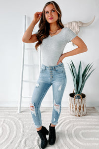 Maliah Short Sleeve Scoop Back Bodysuit (Heather Grey) - NanaMacs