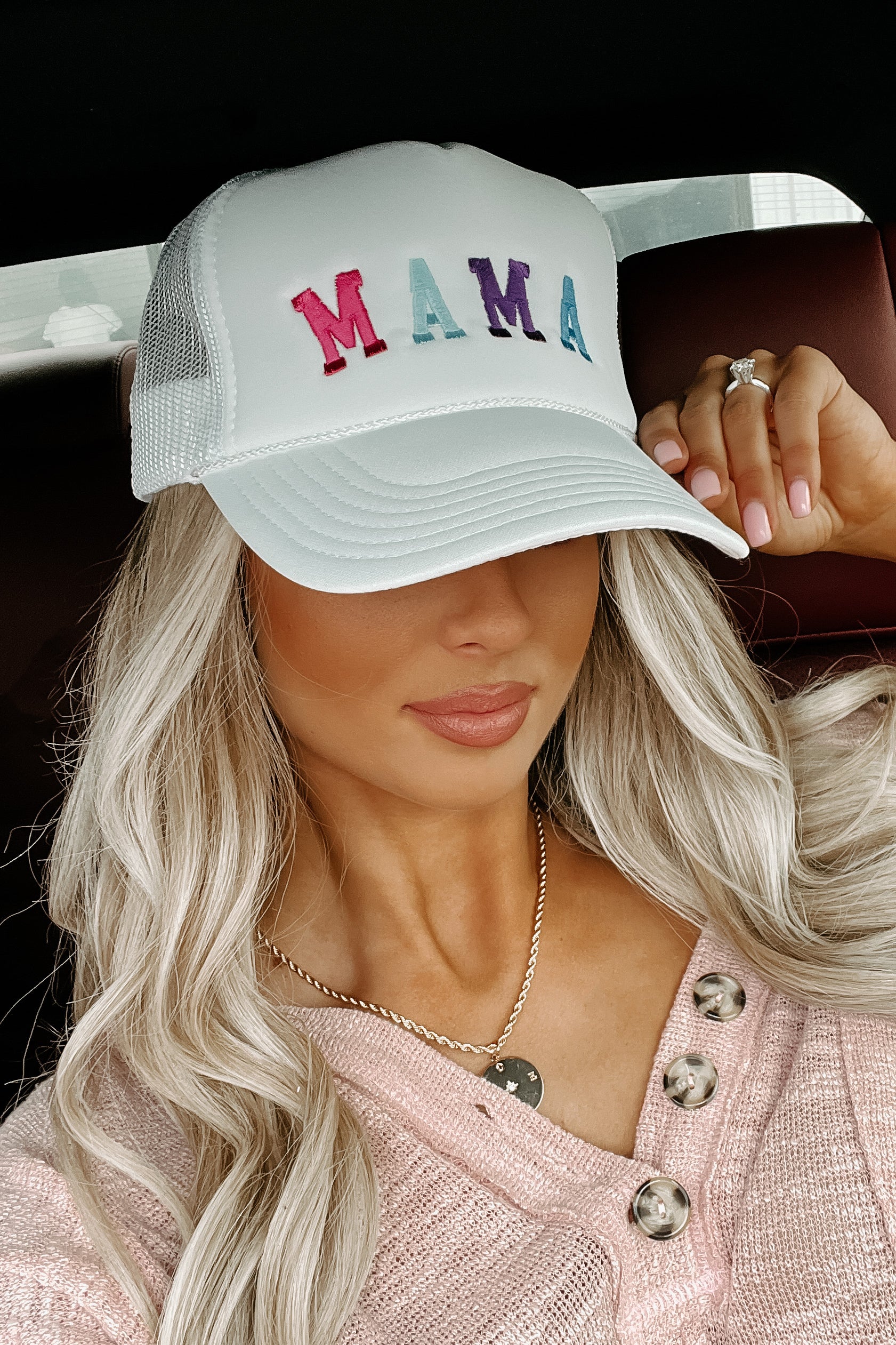 "Mama" Embroidered Foam Trucker Cap (White) - NanaMacs